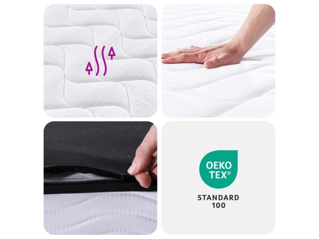- Snadná údržba: Pružinová pěnová matrace je ve spodní části vybavena dlouhým zipem, který umožňuje snadné sejmutí potahu pro vyprání.