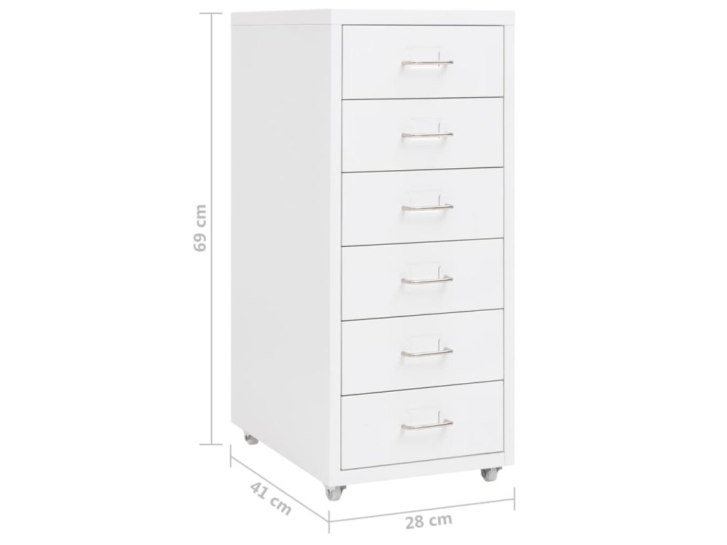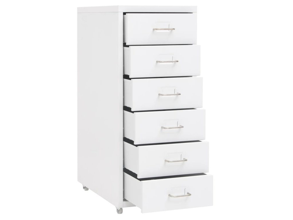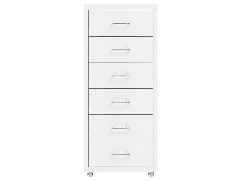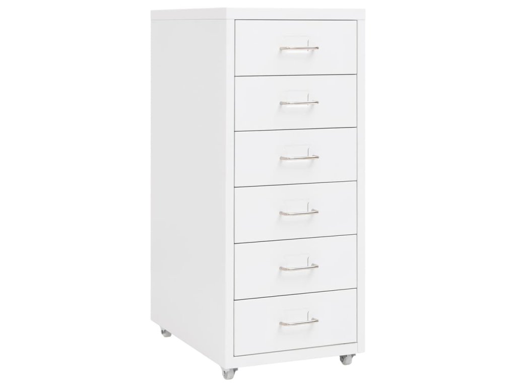 Tato kancelářská skříňka je zhotovena z kovu, je tedy odolná a snadno se čistí. Kartotéka má 6 zásuvek a do kovových úchytů můžete vložit jmenovky, takže máte možnost složky přehledně třídit do různých kategorií. 4 kolečka vám usnadní přesouvání této skříňky z místa na místo. Její ikonický design skvěle zapadne do každé kanceláře. Navíc se snadno čistí vlhkým hadříkem.