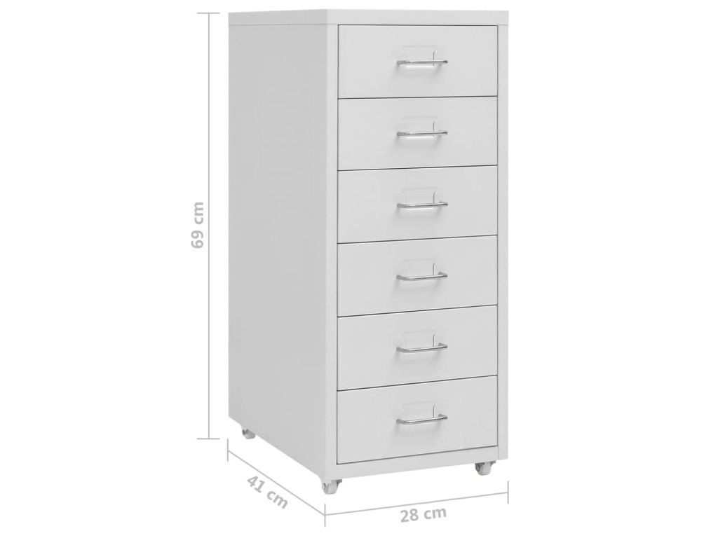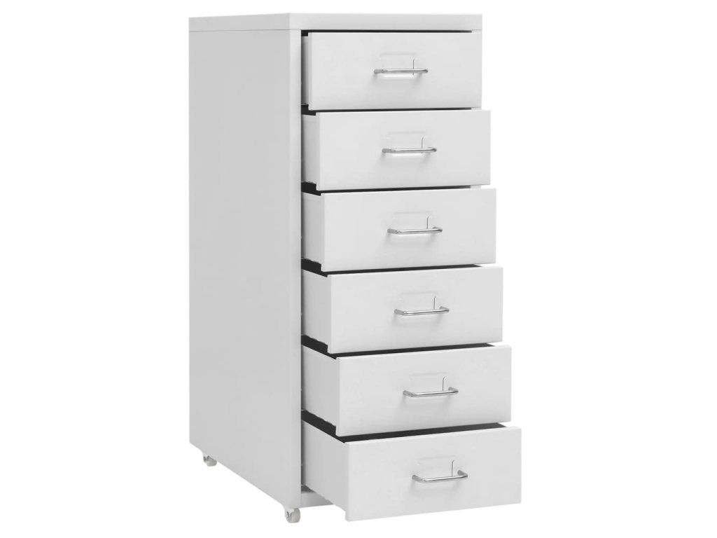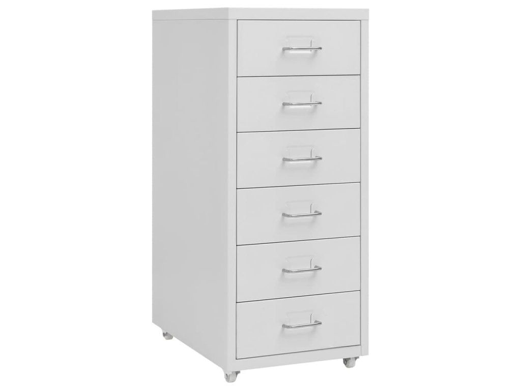 Tato kancelářská skříňka je zhotovena z kovu, je tedy odolná a snadno se čistí. Kartotéka má 6 zásuvek a do kovových úchytů můžete vložit jmenovky, takže máte možnost složky přehledně třídit do různých kategorií. 4 kolečka vám usnadní přesouvání této skříňky z místa na místo. Její ikonický design skvěle zapadne do každé kanceláře. Navíc se snadno čistí vlhkým hadříkem.