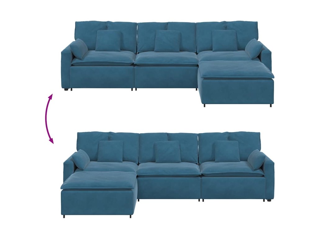- Velkorysá místa k sezení: Díky čtyřem modulárním sekcím poskytuje pohovka dostatek místa k pohodlnému lenošení, takže je ideální pro rodinné sešlosti nebo pro zábavu s přáteli. Její prostorný design zajistí, že si všichni společně odpočinou, ať už ji použijete v útulném obývacím pokoji nebo v otevřeném prostoru.