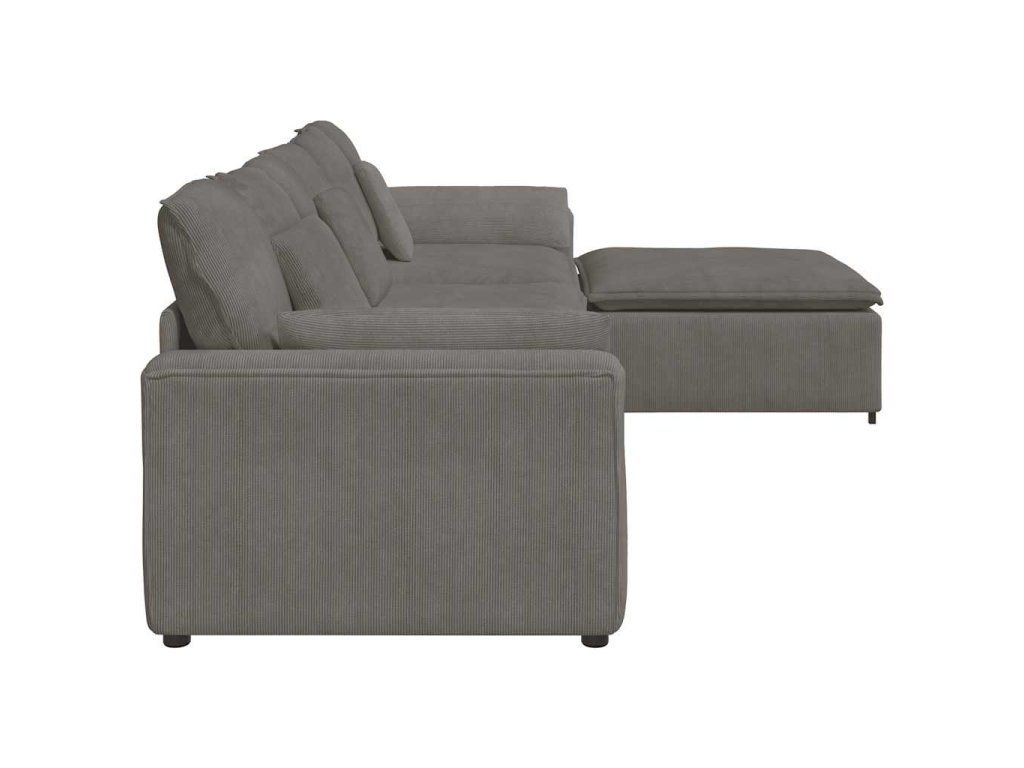 - Velkorysá místa k sezení: Díky čtyřem modulárním sekcím poskytuje pohovka dostatek místa k pohodlnému lenošení, takže je ideální pro rodinné sešlosti nebo pro zábavu s přáteli. Její prostorný design zajistí, že si všichni společně odpočinou, ať už ji použijete v útulném obývacím pokoji nebo v otevřeném prostoru.