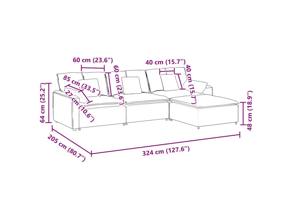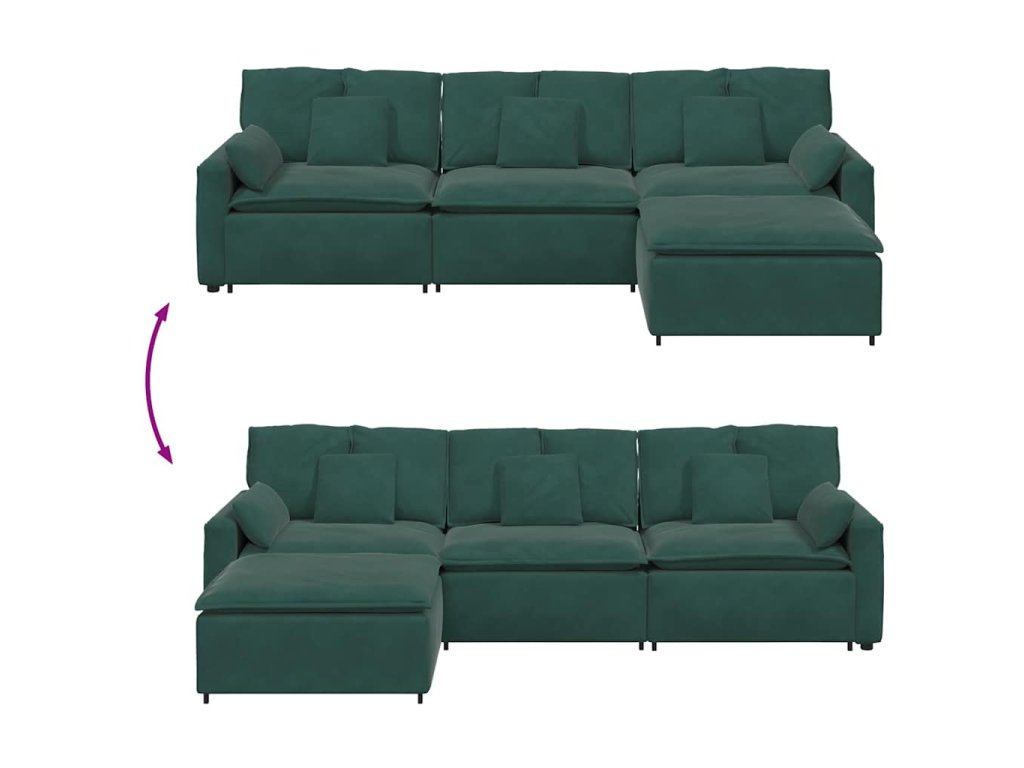 - Velkorysá místa k sezení: Díky čtyřem modulárním sekcím poskytuje pohovka dostatek místa k pohodlnému lenošení, takže je ideální pro rodinné sešlosti nebo pro zábavu s přáteli. Její prostorný design zajistí, že si všichni společně odpočinou, ať už ji použijete v útulném obývacím pokoji nebo v otevřeném prostoru.