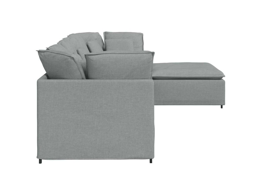 - Modulární konstrukce: Modulární konstrukce pohovky umožňuje snadnou změnu konfigurace tak, aby vyhovovala jakémukoli uspořádání místnosti. Modul podnožky můžete umístit na pravou nebo levou stranu a přizpůsobit jej tak svým potřebám a osobním preferencím. Tato flexibilní sestava zajišťuje všestranné řešení sezení, které se dokonale přizpůsobí vašemu prostoru a životnímu stylu.