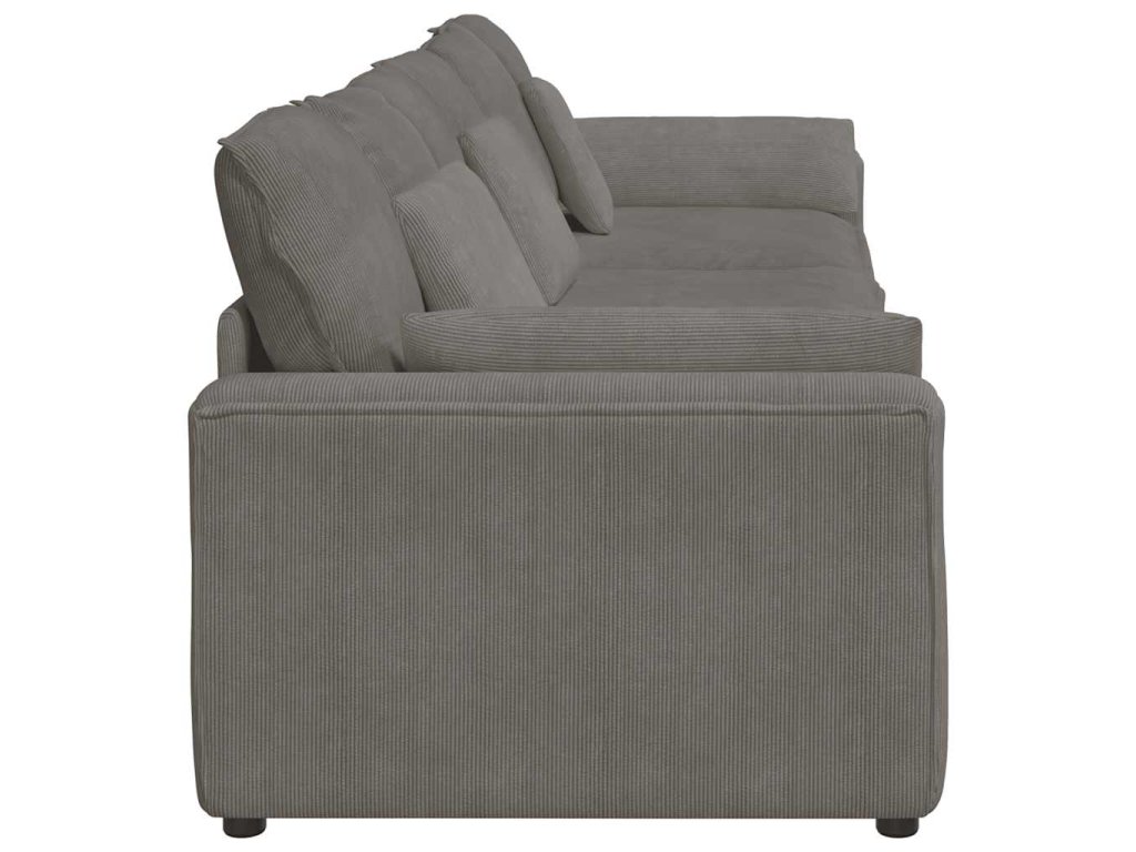 - Extra pohodlí: Pohovka s opěrnými područkami a textilénovým sedákem nabízí nepřekonatelné pohodlí pro relaxaci a je vybavena polštáři, které obepínají tvar vašeho těla pro maximální požitek z lenošení.