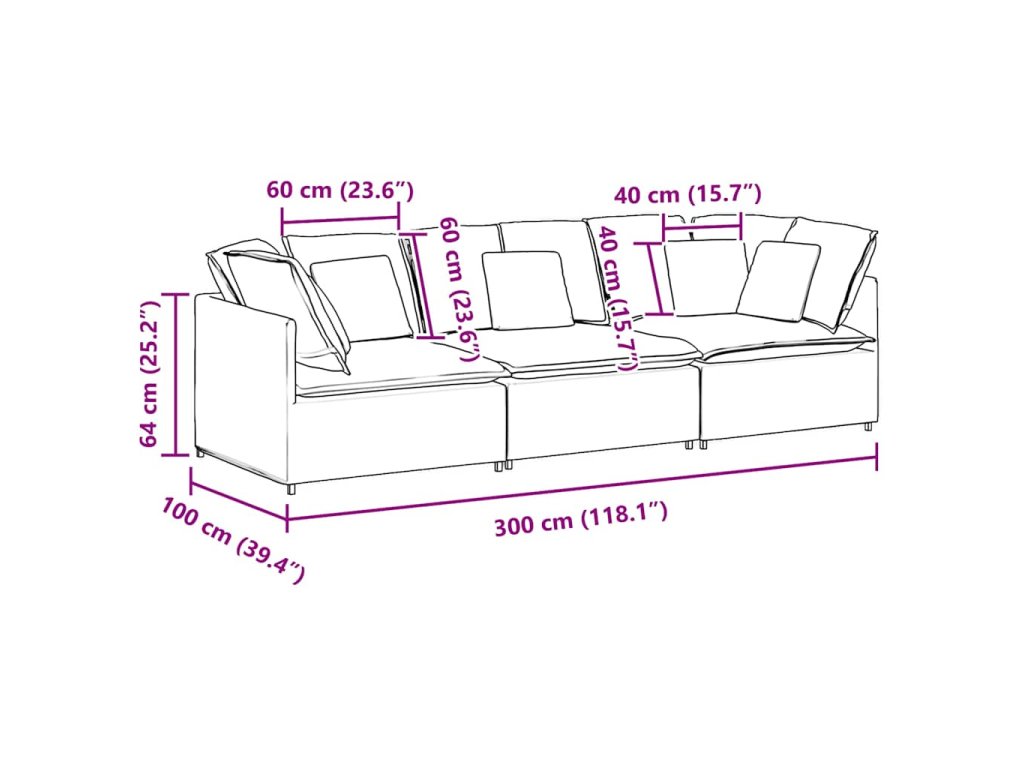 - Velkorysá místa k sezení: Díky třem modulárním částem poskytuje pohovka dostatek místa k pohodlnému lenošení, takže je ideální pro rodinné sešlosti nebo pro zábavu s přáteli. Její prostorný design zajistí, že si všichni společně odpočinou, ať už ji použijete v útulném obývacím pokoji nebo v otevřeném prostoru.