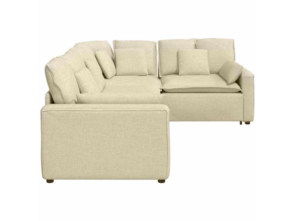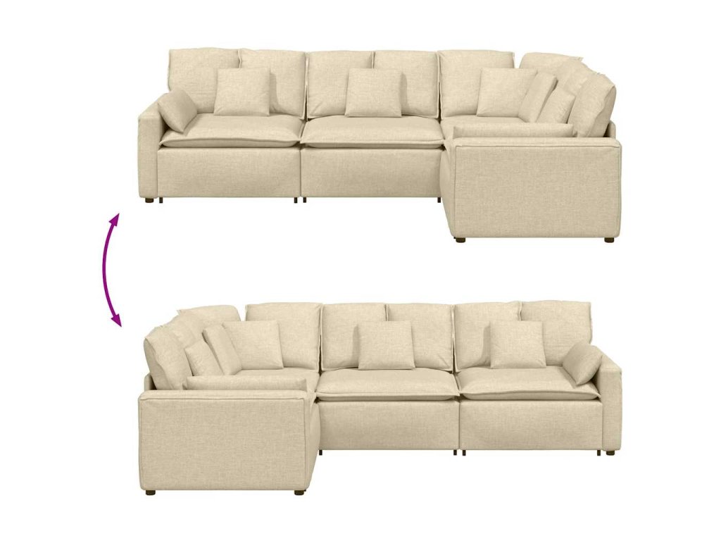 - Modulární konstrukce: Modulární konstrukce pohovky umožňuje snadnou změnu konfigurace tak, aby vyhovovala jakémukoli uspořádání místnosti. Tato flexibilní sestava zajišťuje všestranné řešení sezení, které se dokonale přizpůsobí vašemu prostoru a životnímu stylu.