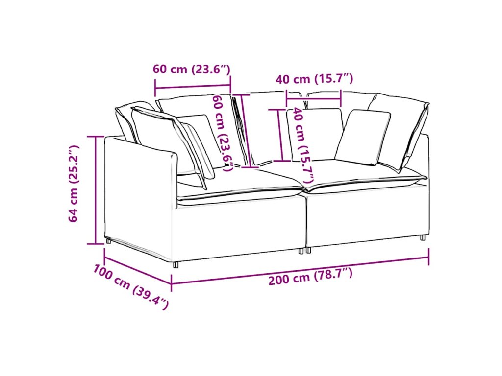 - Velkorysá místa k sezení: Pohovka je vybavena dvěma modulárními částmi a poskytuje dostatek místa k pohodlnému lenošení, takže je ideální pro rodinné sešlosti nebo zábavu s přáteli. Její prostorný design zajistí, že si všichni společně odpočinou, ať už ji použijete v útulném obývacím pokoji nebo v otevřeném prostoru.