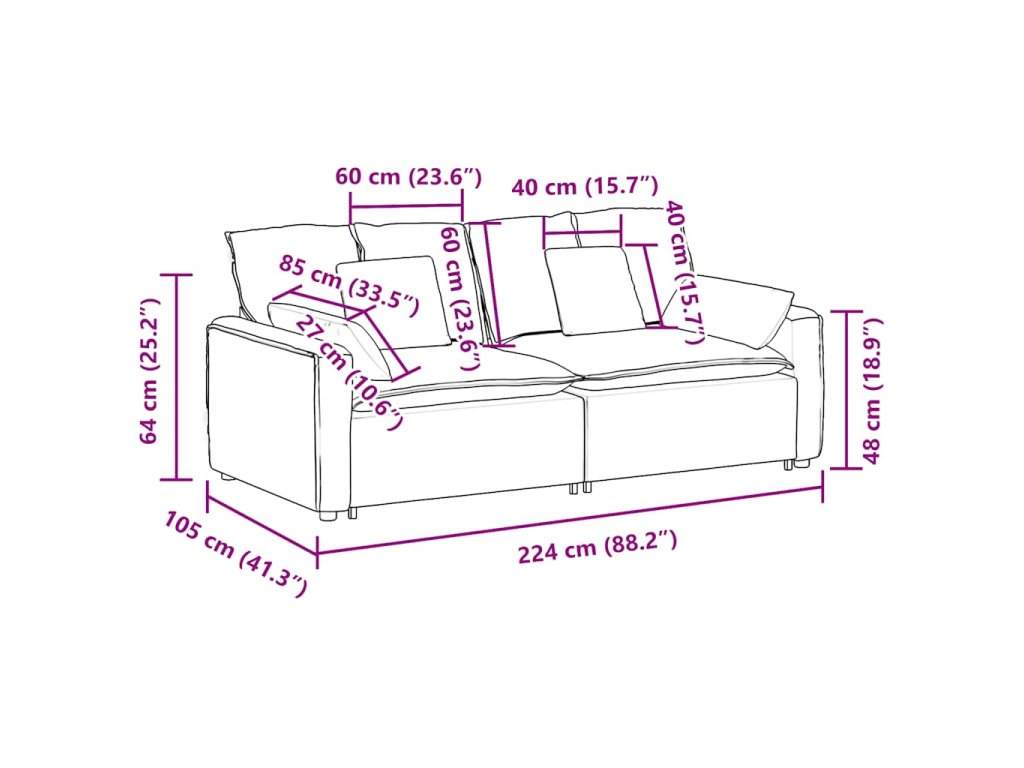 - Velikost dlouhého polštáře (každý): 85 x 27 cm (d x š)