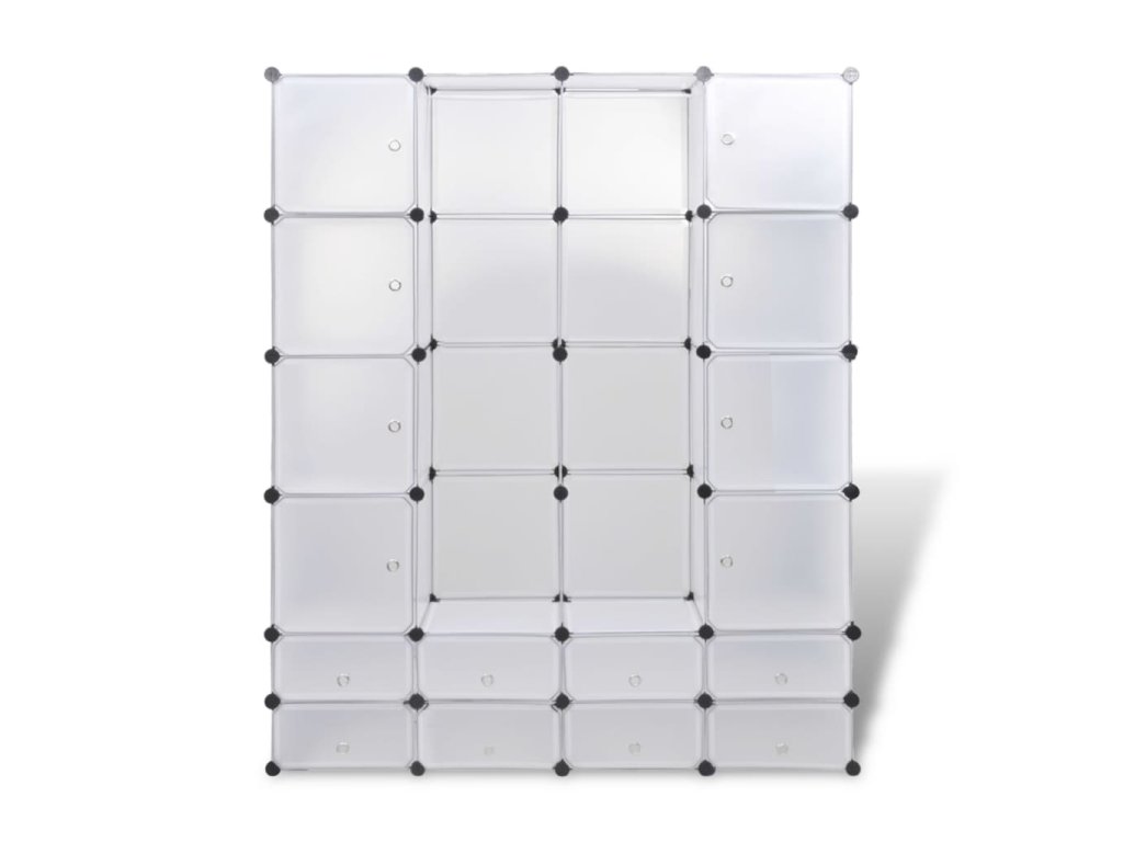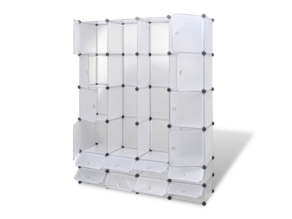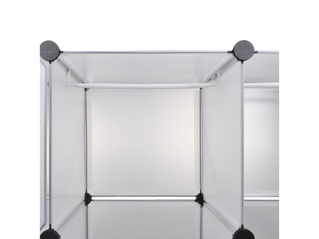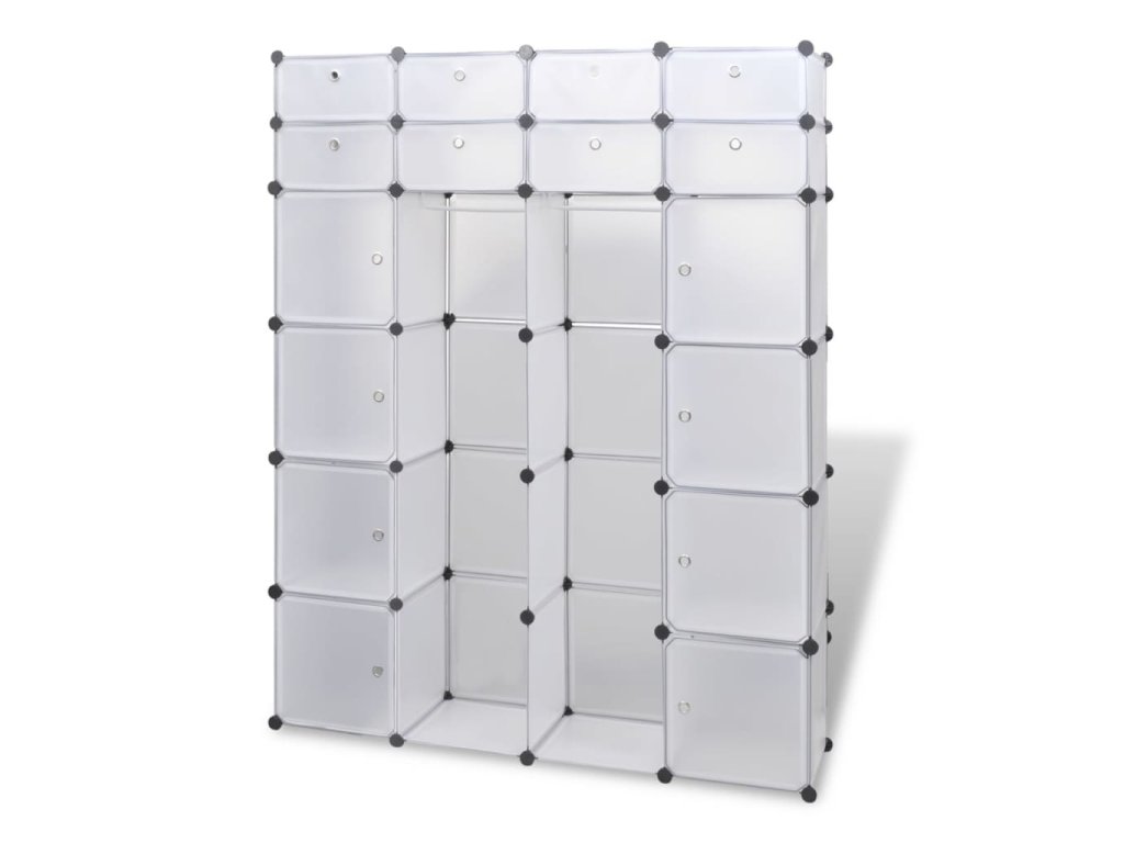 Šatník je vyroben z plastových elementů a chromovaného ocelového drátu, takže se snadno čistí. Vzhledem ke svému promyšlenému designu se skříň dá snadno a rychle složit v různém uspořádání, aby se přizpůsobila prostoru nebo vaší náladě.