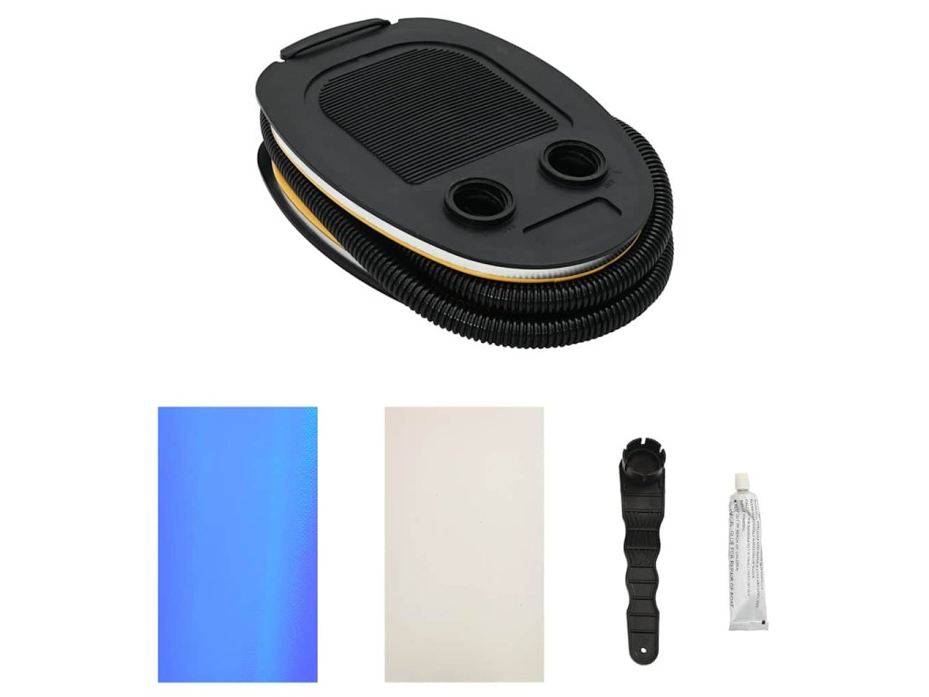 Balení obsahuje opravnou záplatu a nožní čerpadlo pro snadné nafouknutí a vyfouknutí.