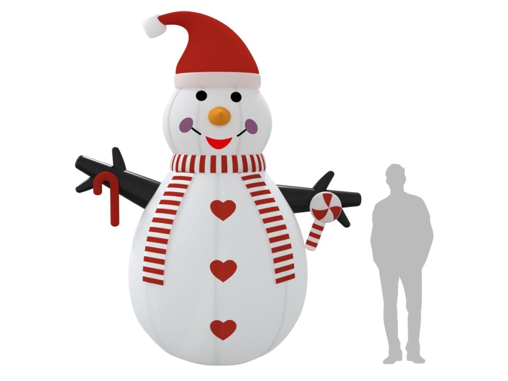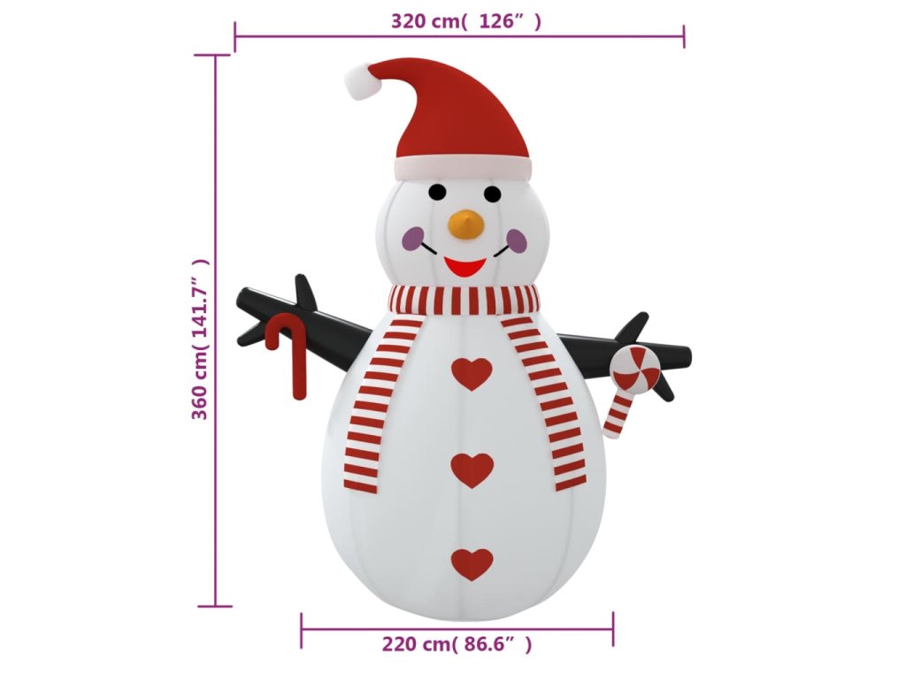 - Vestavěná LED světla: Nafukovací sněhulák má uvnitř zabudovaná LED světla, která umocňují sváteční atmosféru a dávají vyniknout vašemu domu.