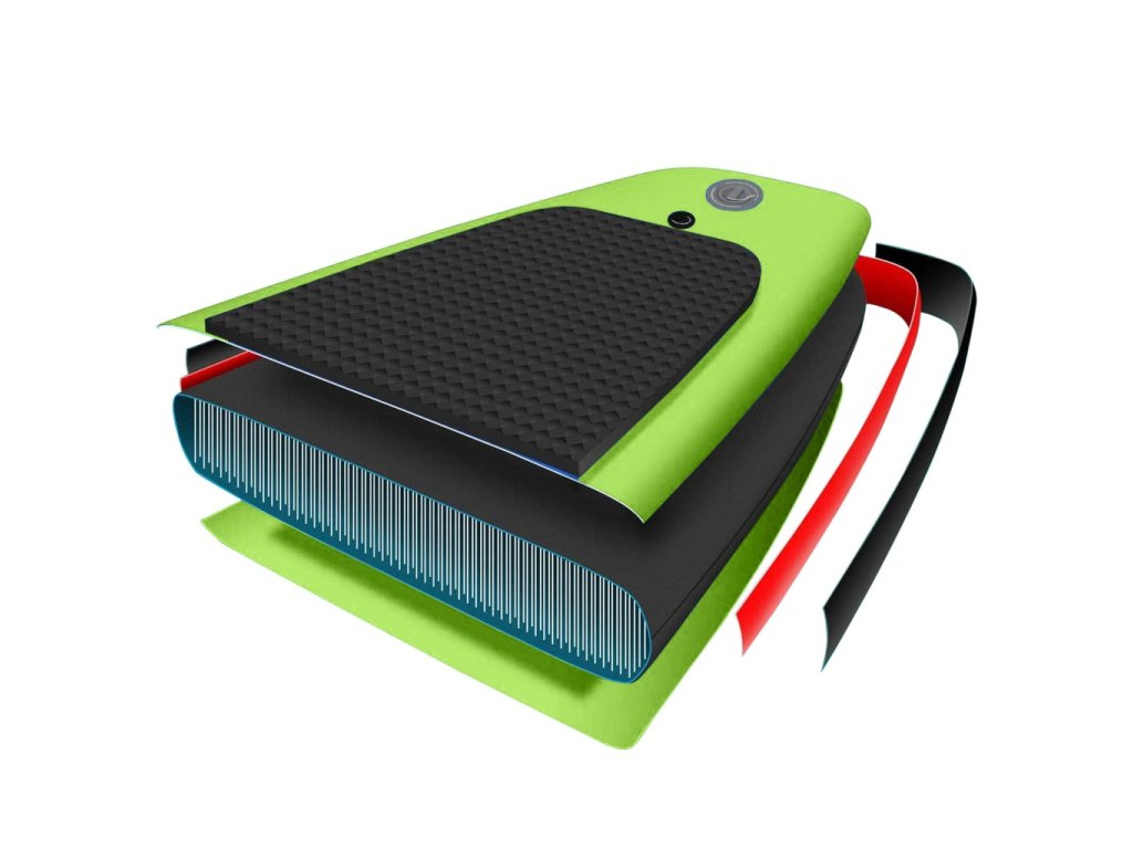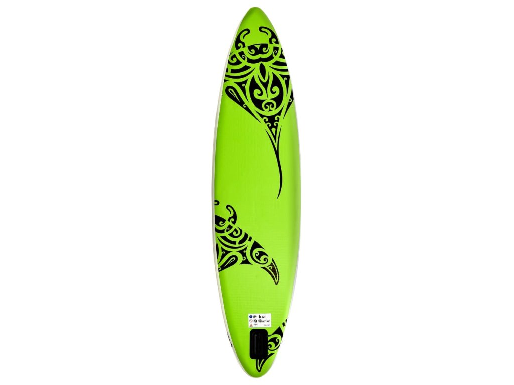 Tento SUP board má dokonalý tvar, který zvyšuje jeho tuhost pro stabilnější jízdu. Tento board bez námahy klouže po klidných vodách a hladce jezdí v malém příboji. Nafukovací SUP board je odolný proti propíchnutí a UV záření. Je vybavený speciálními vysokotlakými šroubovacími ventily a nafouknete i vyfouknete snadno a rychle. Odnímatelná ploutvička je dostatečně odolná, aby vydržela tlak při pádlování. Protiskluzová trakční podložka zajišťuje pevný a stabilní jízdní postoj. Součástí balení je také praktický vak pro snadnou a rychlou přepravu.