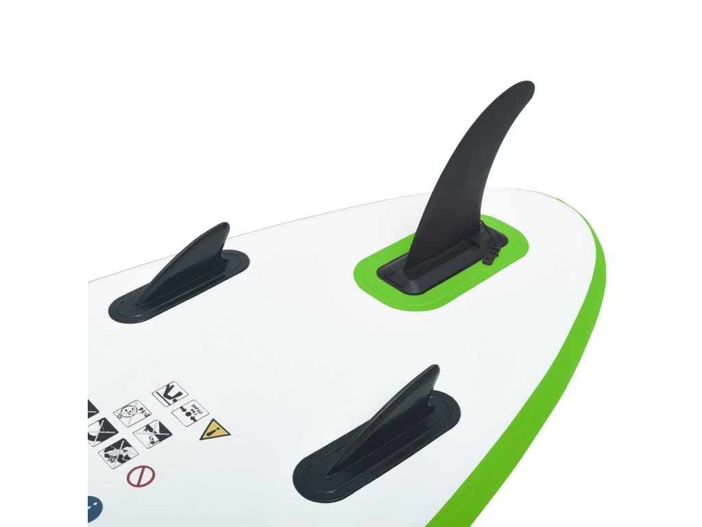 Je vybavený speciálními vysokotlakými šroubovými ventily pro rychlé nahuštění a vyfouknutí. Dvě pevné finy a jedna odnímatelná jsou dostatečně odolné, aby zvládly tlak při pádlování. Přiložená je i praktická taška pro snadnou a rychlou přepravu. Náš SUP board má perfektní povrchové zakřivení, které podporuje jeho konstrukční tuhost pro stabilnější jízdu. Prkno bez námahy klouže po klidné hladině a hladce projíždí příbojem. Nafukovací SUP board je odolný proti propíchnutí i UV záření a skvěle odolává extrémním námořním podmínkách. Upozorňujeme, že jde o výrobek určený dospělým osobám.