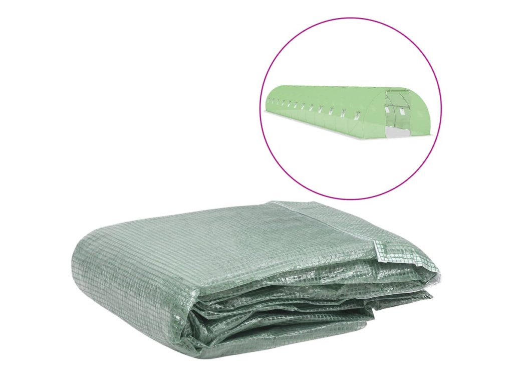 Plachta je vyrobená z PE, který je těžší než standardní síťovina. Tato skleníková plachta disponuje 24 okny pro větrání a 1 dveřmi.