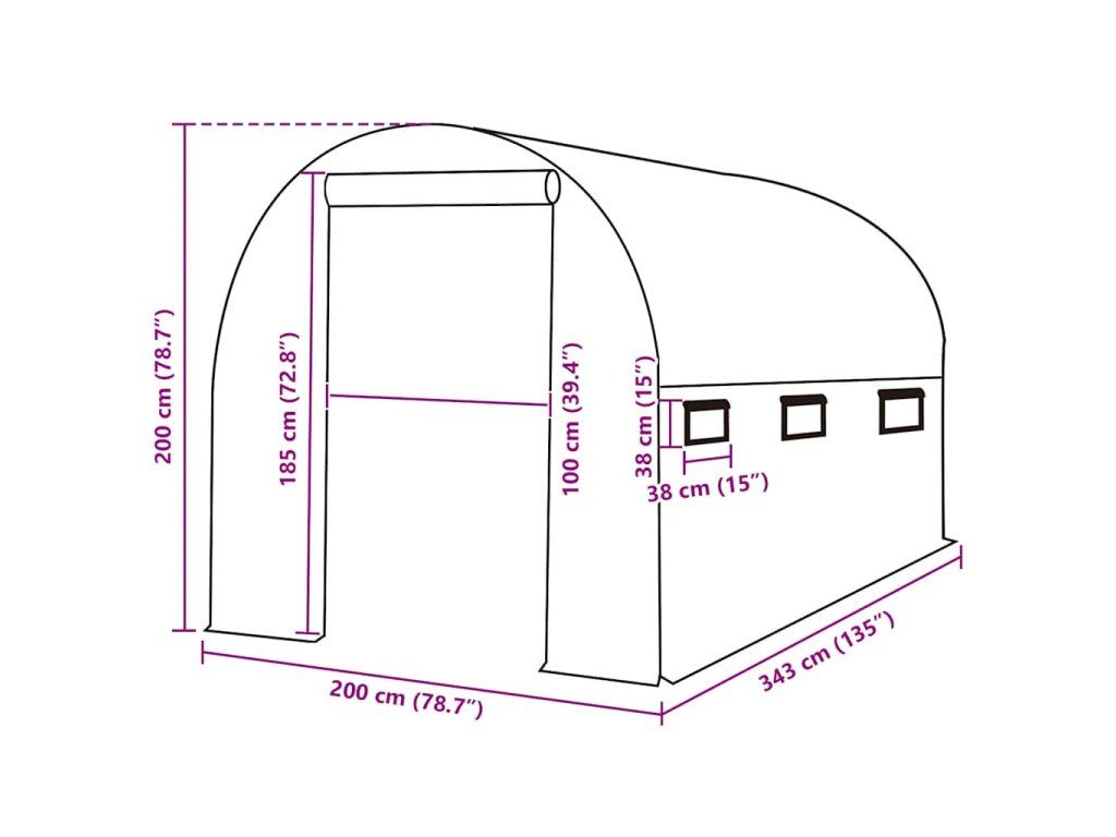 Plachta je vyrobená z PE, který je těžší než standardní síťovina. Tato skleníková plachta disponuje 6 okny pro větrání a 1 dveřmi.