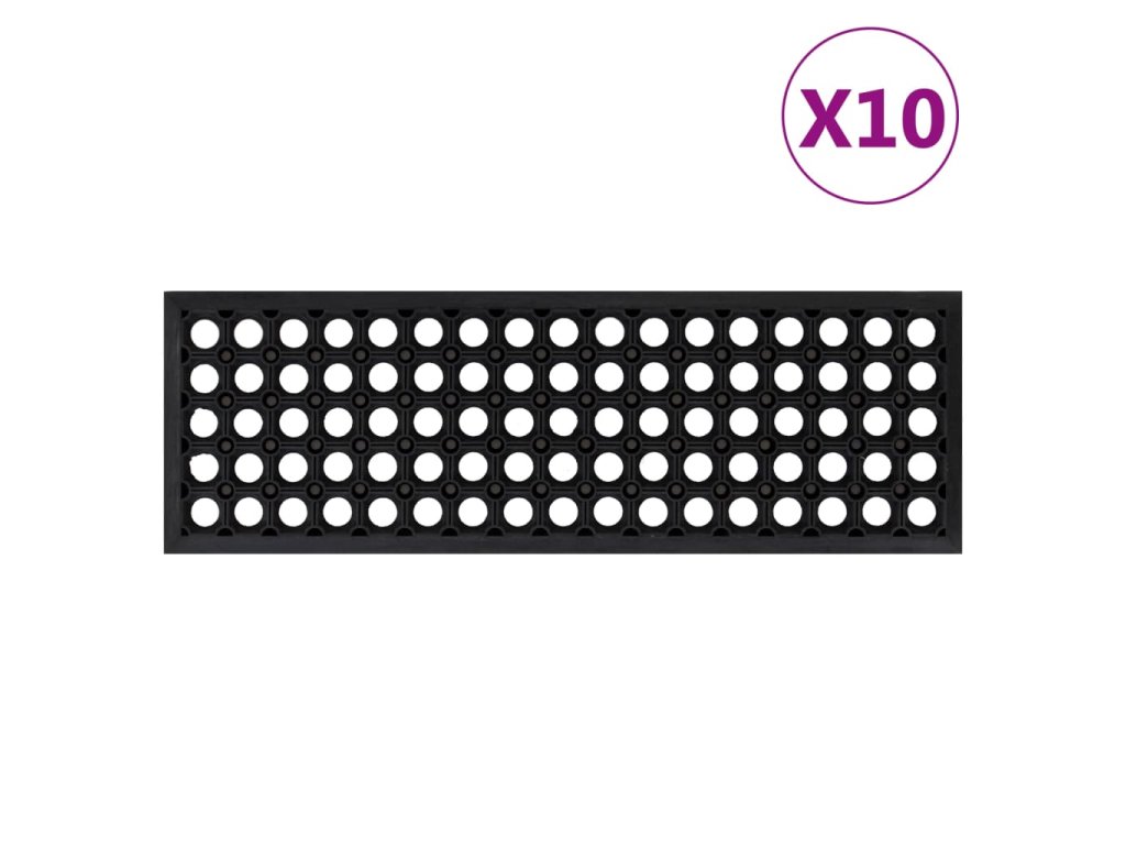 - Odolný materiál: Nášlapy na schody jsou vyrobeny z pružné gumy odolné proti opotřebení, která tlumí nárazy a zajišťuje jejich dlouhou životnost a odolnost proti skvrnám.