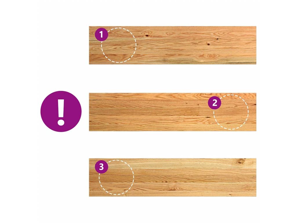 - Každý výrobek je jedinečný s variacemi odstínů a kreseb dřeva. Výběr kusu k dodání je náhodný, což zajišťuje exkluzivitu a individualitu vašeho produktu.