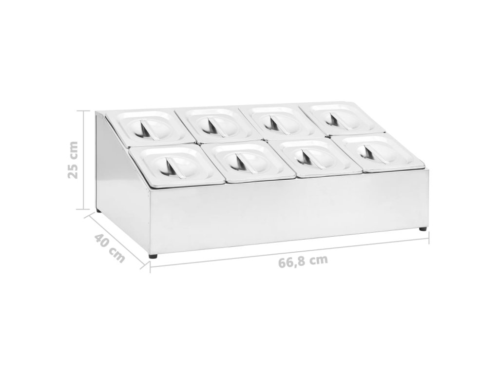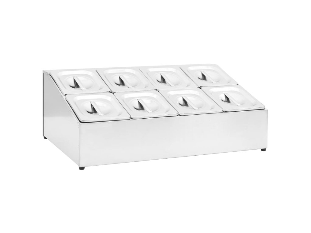 Tato dvouřadá nástavba pro GN nádoby je rafinované řešení pro skladování a podávání ingrediencí, pokrmů, ovoce, omáček atd. Je ideální pro restaurace, hotely, večírky, domácnosti atd.