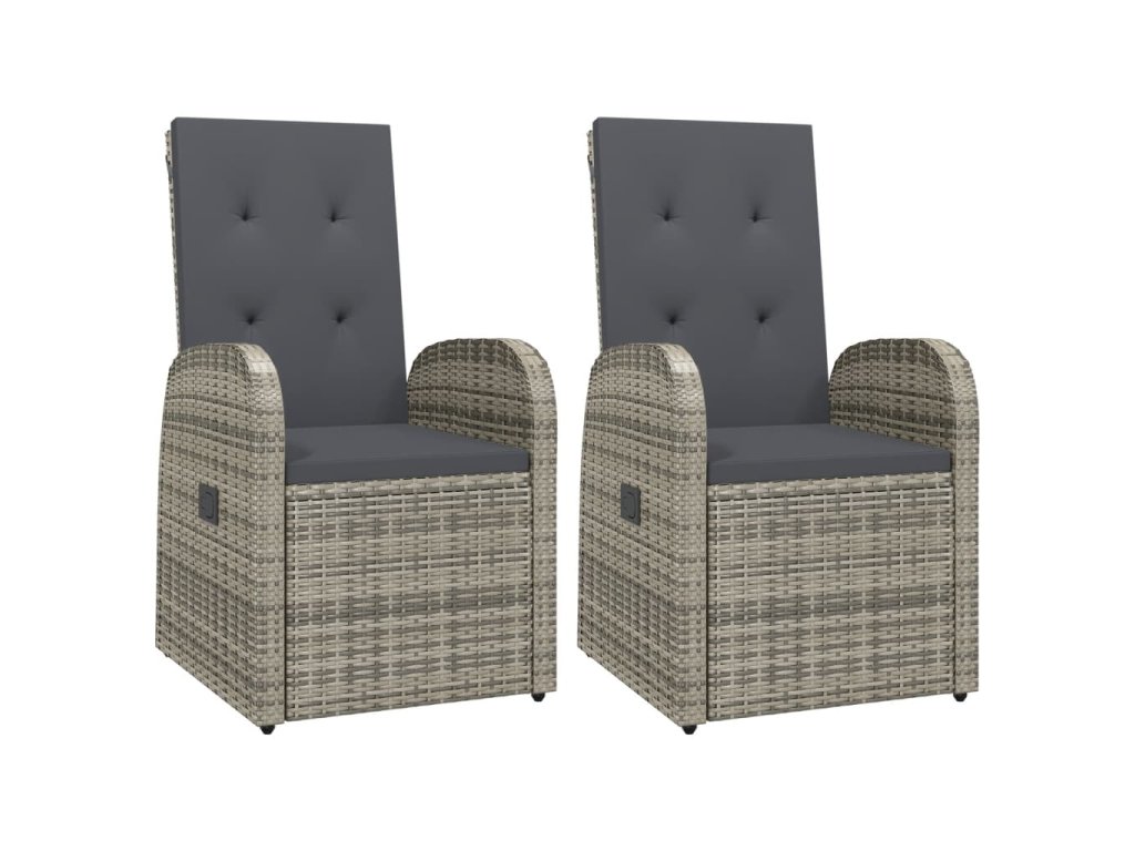 Křesla jsou vyrobená z voděodolného PE ratanu, a proto se snadno čistí, jsou velmi trvanlivá a vhodná pro každodenní používání. Ocelové rámy s práškovým nástřikem zaručují pevnost a odolnost křesel. Polohovací křesla vám poskytnou veškeré pohodlí, jaké si můžete přát. Opěradlo se dá sklopit zatažením za tlačítko na boční straně křesla. Lehká konstrukce umožňuje snadné přesouvání křesílek. Spolu s křesly obdržíte rovněž mimořádně pohodlné, silně polstrované podušky na sedáky, jež se postarají o vaše naprosté pohodlí. Polyesterové potahy nevyžadují žádnou náročnou údržbu a dají se snadno sejmout a oprat. Montáž je jednoduchá.