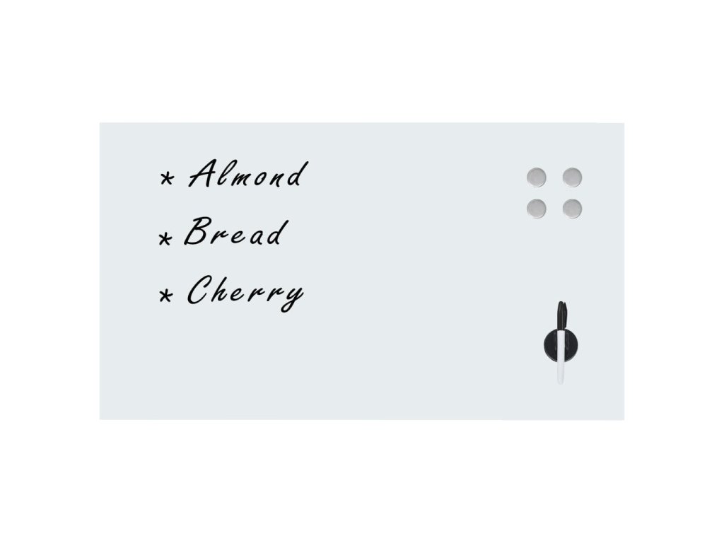 Tabule má povrch z bezpečnostního tvrzeného skla, a tak se jen tak nezašpiní, nepoškrábe ani neodře. Pomocí přiloženého magnetu si na ni můžete připnout papíry či poznámky. Na magnetickou tabuli lze též psát bílým fixem, který snadno setřete za sucha dodanou mazací houbou. Součástí balení jsou i veškeré potřebné montážní materiály, takže produkt bez námahy zavěsíte na zeď, ať už doma, v kanceláři nebo ve škole.