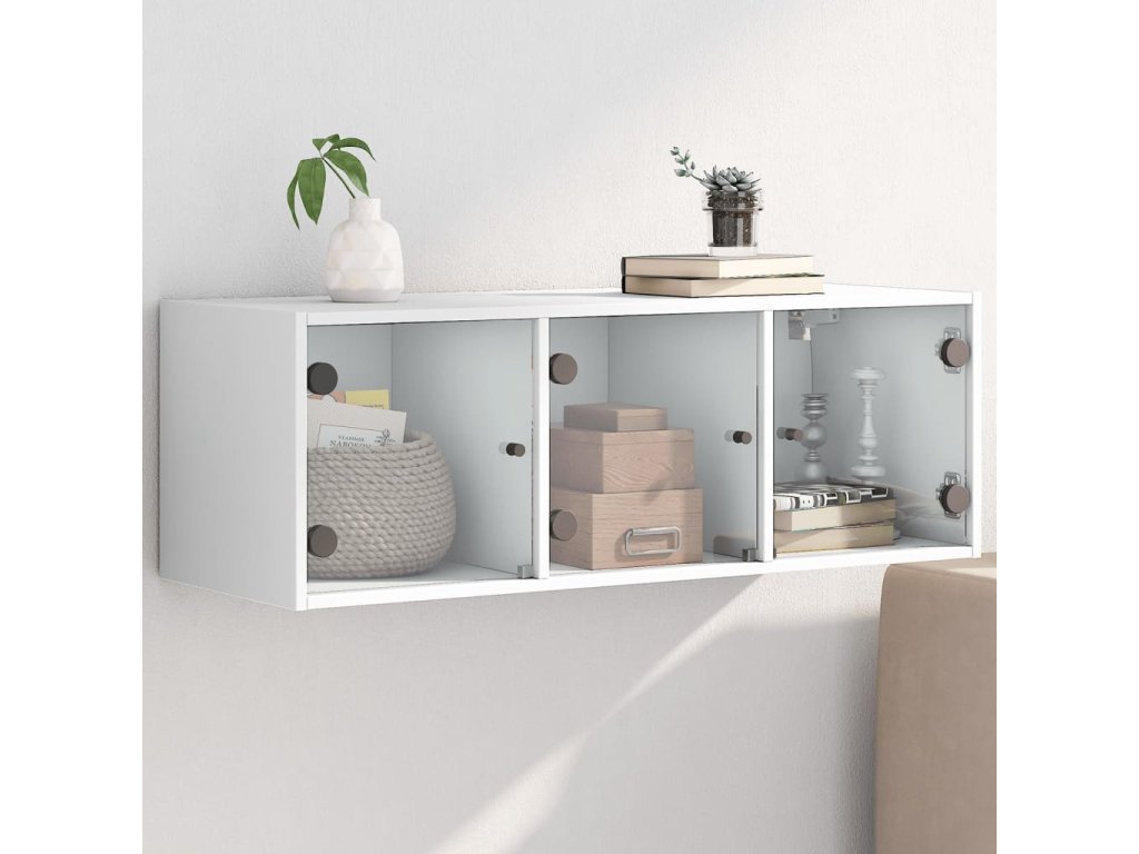 - Praktická skleněná dvířka: Udržujte svůj prostor bez nepořádku tím, že drobné předměty schováte za dvířka nástěnné jednotky. Skleněná dvířka navíc umožňují nahlížet dovnitř plovoucí skříně a krásně vystavit předměty.