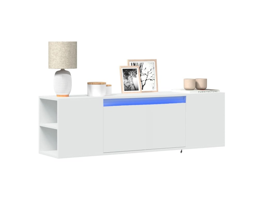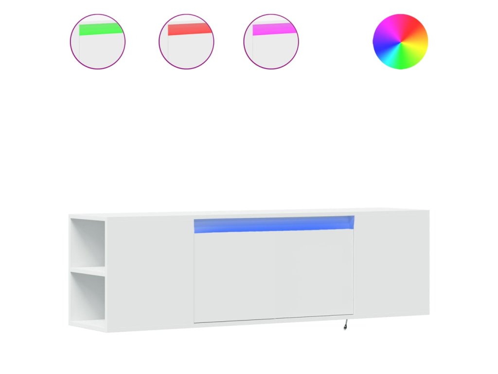- RGB LED světla pro příjemnou atmosféru: Tato TV skříňka je vybavena LED osvětlením, které lze snadno přizpůsobit a vytvořit tak individuální světelnou atmosféru. Umožňuje přizpůsobit režimy, barvy a jas, abyste si vytvořili příjemnou atmosféru svého interiéru.