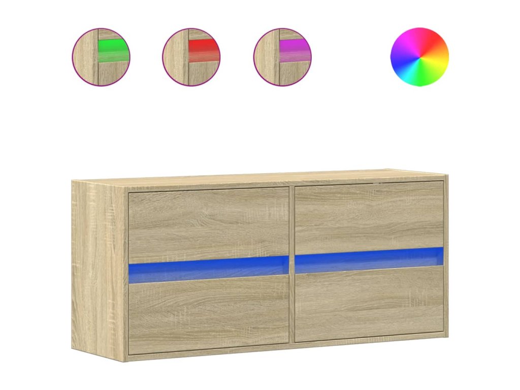 - RGB LED světla pro příjemnou atmosféru: Tato TV skříňka je vybavena LED osvětlením, které lze snadno přizpůsobit a vytvořit tak individuální světelnou atmosféru. Umožňuje přizpůsobit režimy, barvy a jas, abyste si vytvořili příjemnou atmosféru svého interiéru.