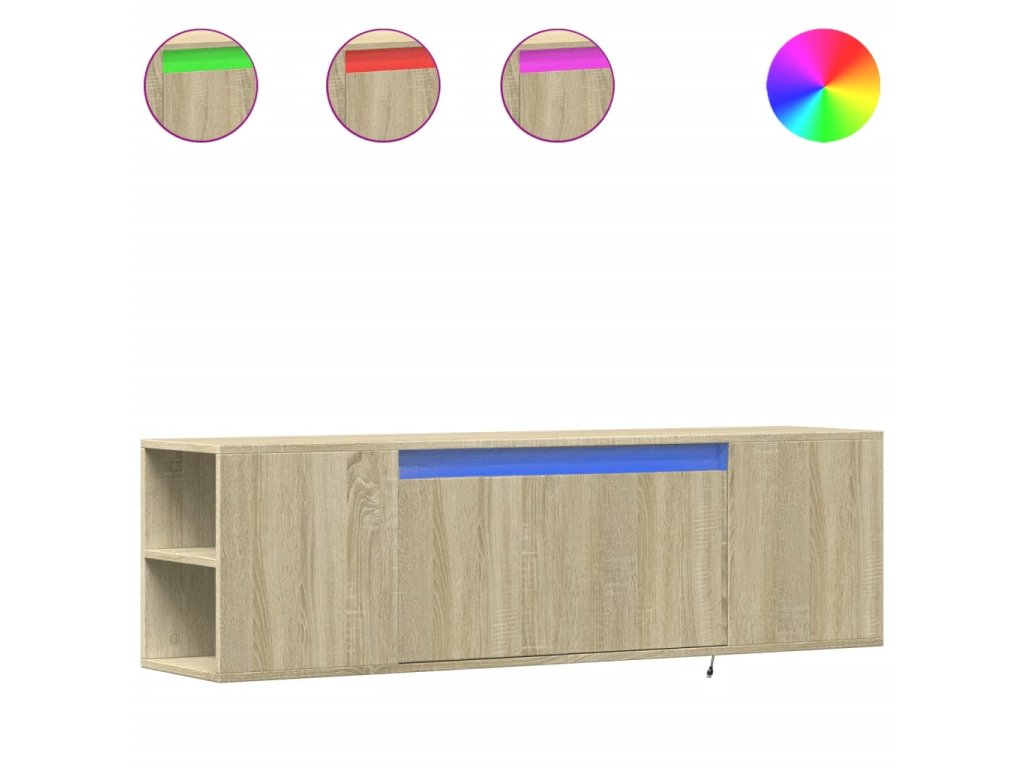 - RGB LED světla pro příjemnou atmosféru: Tato TV skříňka je vybavena LED osvětlením, které lze snadno přizpůsobit a vytvořit tak individuální světelnou atmosféru. Umožňuje přizpůsobit režimy, barvy a jas, abyste si vytvořili příjemnou atmosféru svého interiéru.