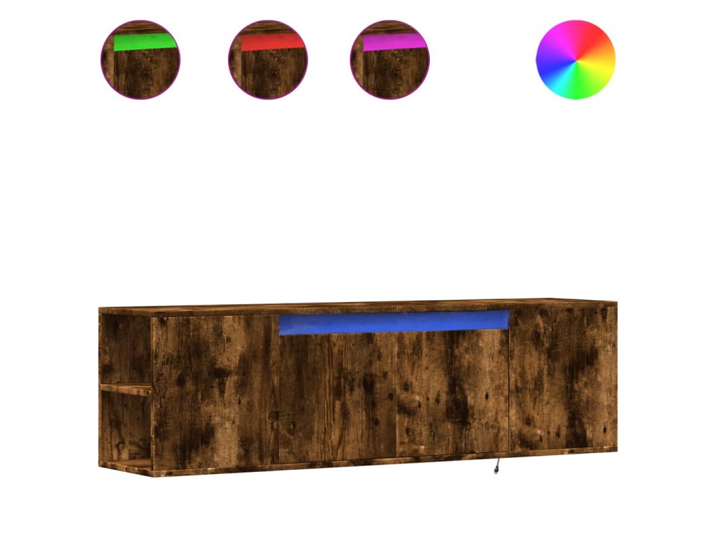 - RGB LED světla pro příjemnou atmosféru: Tato TV skříňka je vybavena LED osvětlením, které lze snadno přizpůsobit a vytvořit tak individuální světelnou atmosféru. Umožňuje přizpůsobit režimy, barvy a jas, abyste si vytvořili příjemnou atmosféru svého interiéru.