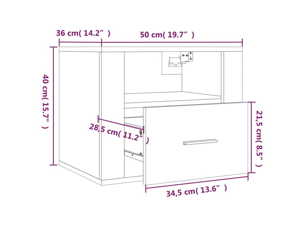 - Robustní horní část: Horní část této závěsné noční skříňky se skvěle hodí k vystavení dekorativních předmětů, zarámovaných obrázků a pokojových rostlin.