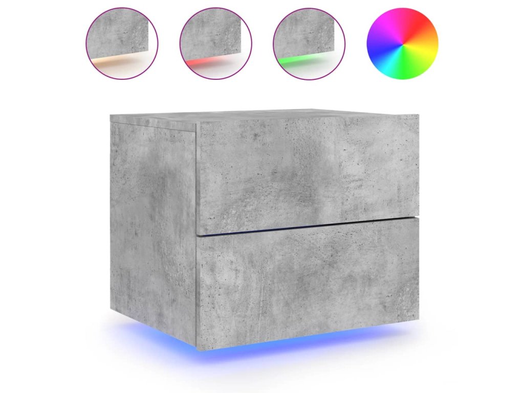 - RGB LED světla: Plovoucí noční stolek je vybaven zářivými RGB LED světly. Různé přizpůsobitelné nabídky vám umožní snadno změnit barvu světel nebo dokonce i nastavit světla tak, aby se přizpůsobila automaticky. Tato LED světla nejen podtrhují moderní vzhled skříňky, ale také jí dodávají na módním půvabu.