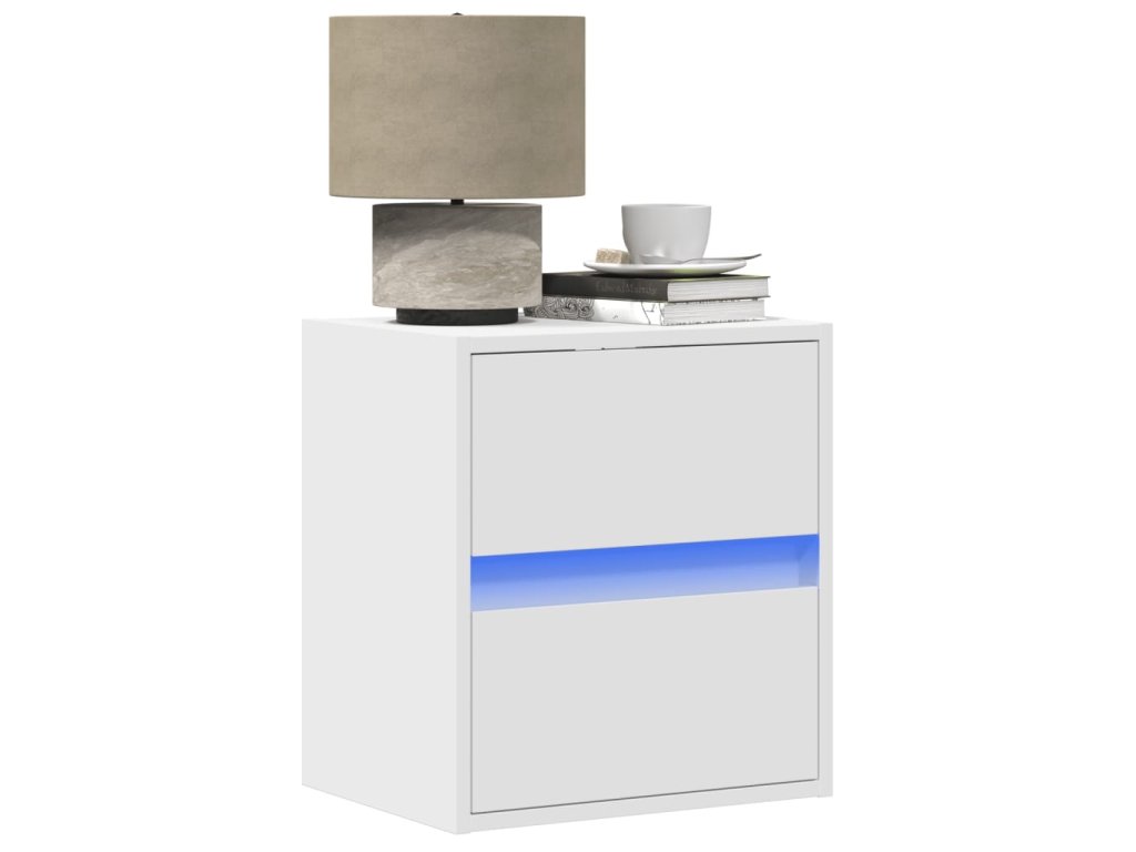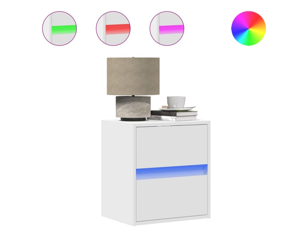 - RGB LED světla pro příjemnou atmosféru: Tento noční stolek je vybaven LED osvětlením, které lze snadno nastavit a vytvořit tak individuální světelnou atmosféru. Umožňuje přizpůsobit režimy, barvy a jas, abyste si vytvořili příjemnou atmosféru svého interiéru.
