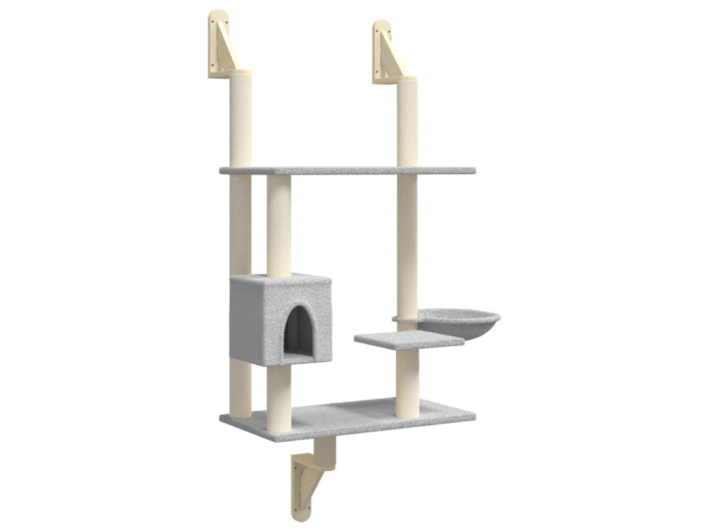 - Nástěnné provedení: Kočičí věž se montuje na stěnu a nezabírá místo na podlaze, je ideální pro malé nebo moderní místnosti a může efektivně šetřit místo.