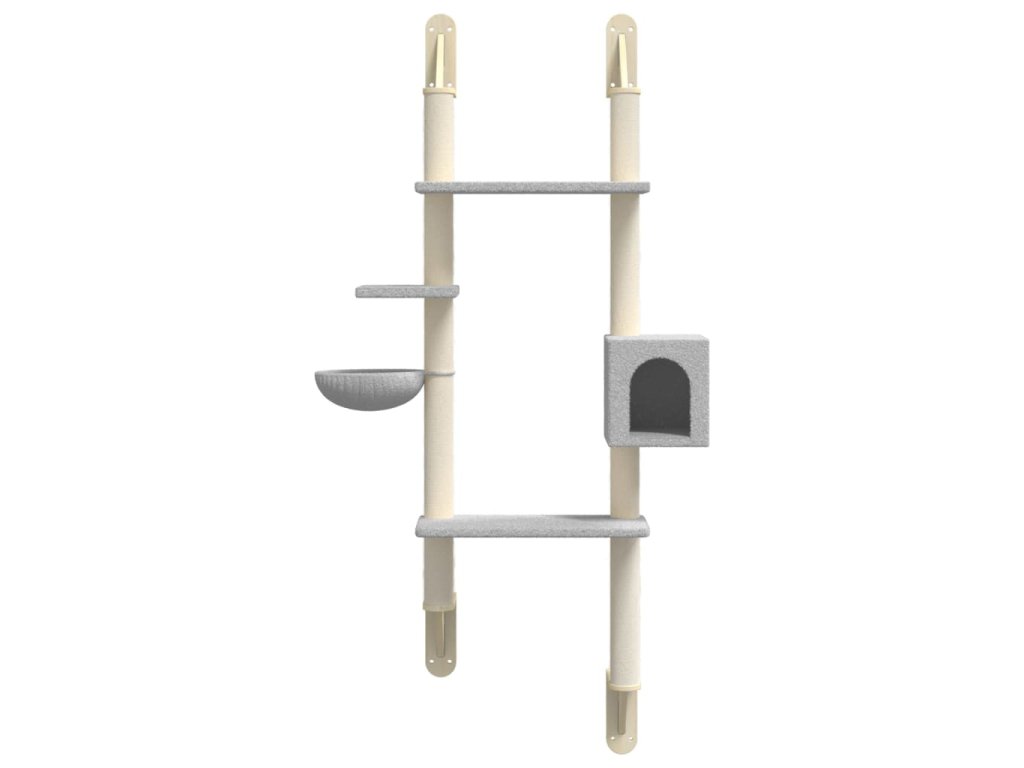 - Nástěnné provedení: Kočičí věž se montuje na stěnu a nezabírá místo na podlaze, je ideální pro malé nebo moderní místnosti a může efektivně šetřit místo.