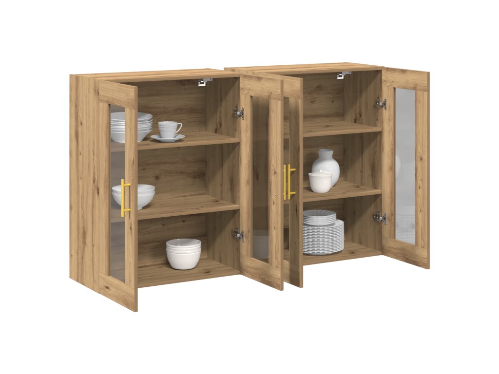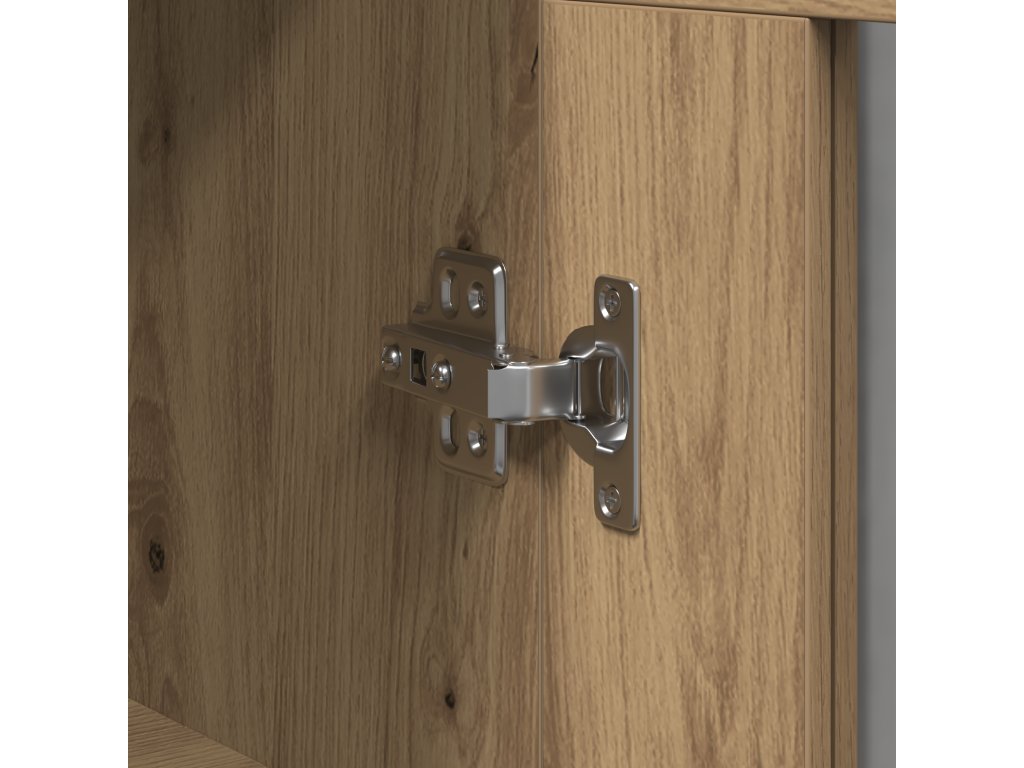 Tato moderní bufetová skříňka mísí styl s praktičností pro váš jídelní nebo obývací prostor. Její textura artisan dubu a nápadné zlaté akcenty nejenže vypadají skvěle, ale poskytují spoustu prostoru na talíře, ubrusy a dekorace.