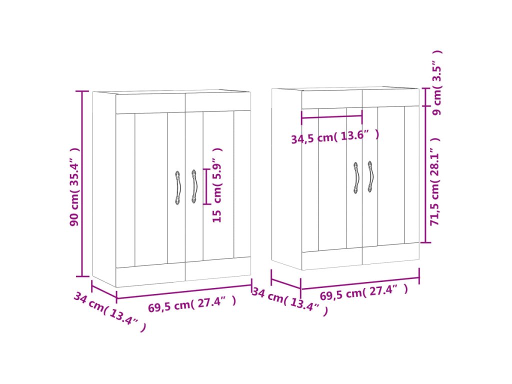 - Rozměry (každý kus): 69,5 x 34 x 90 cm (Š x H x V)