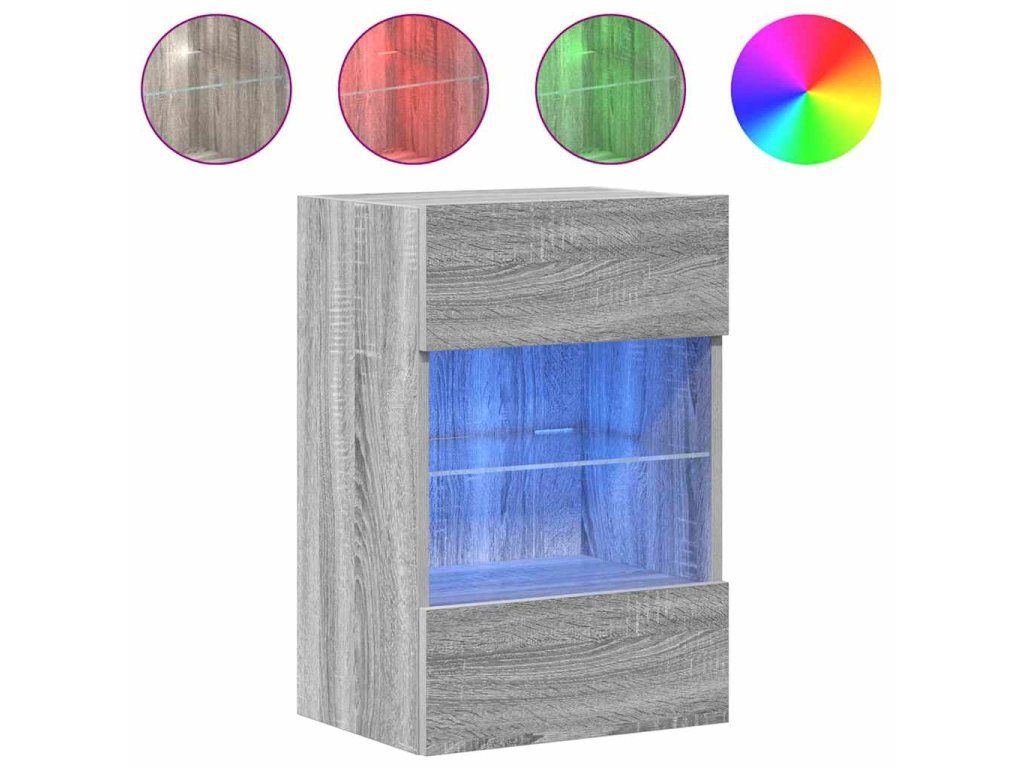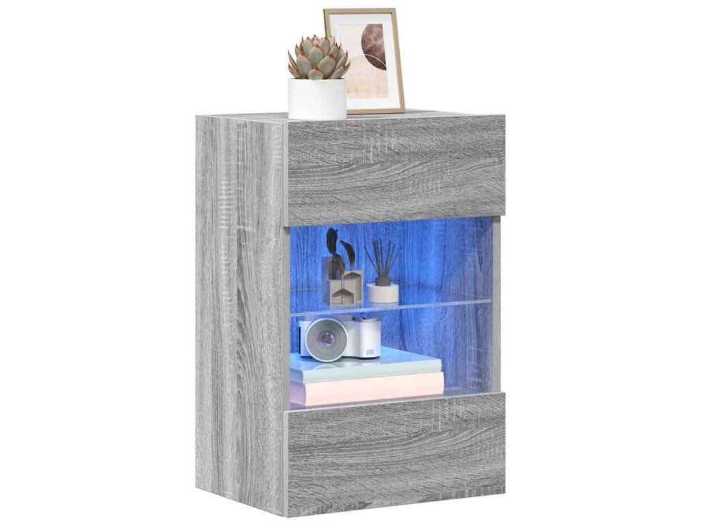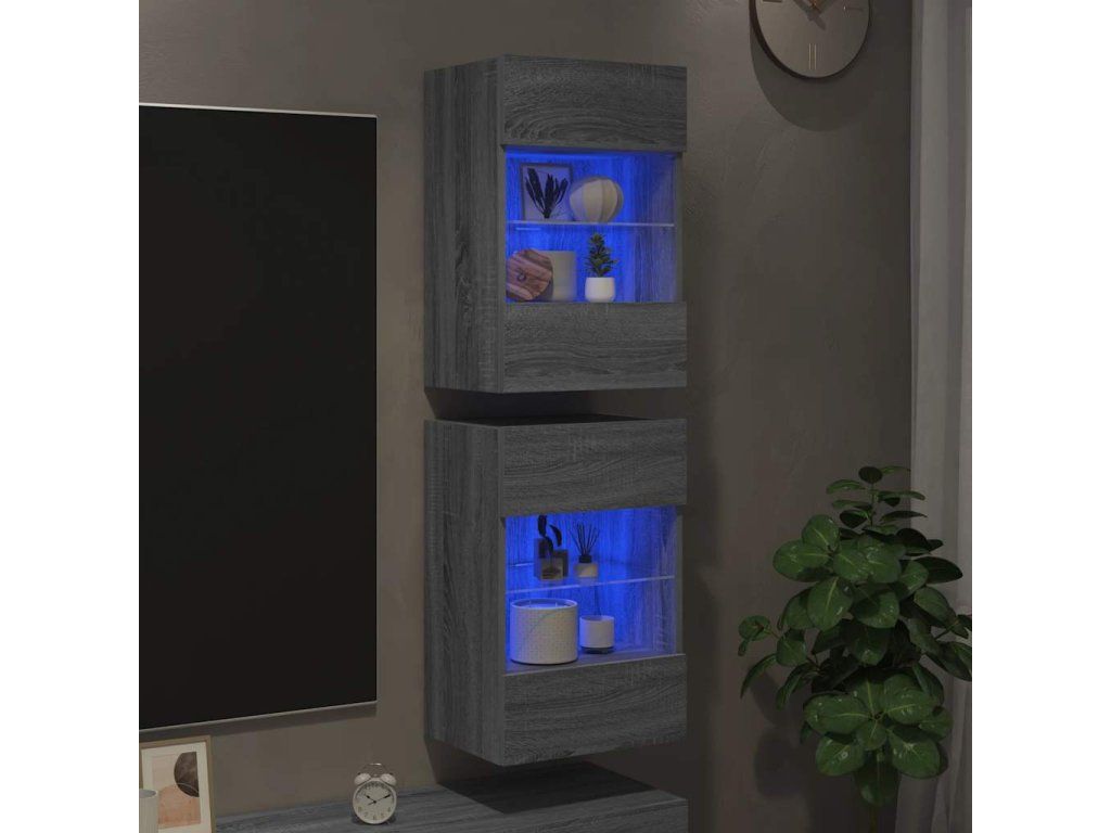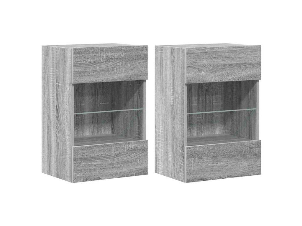vidaXL Nástěnné skříňky s LED osvětlením pro TV 2 ks šedé sonoma 40 x 30 x 60,5 cm