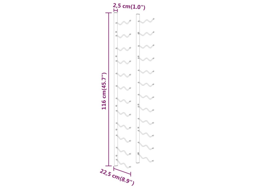 - Jednoduchá montáž: Stojan na víno lze bez námahy připevnit ke zdi pomocí přiloženého montážního příslušenství.