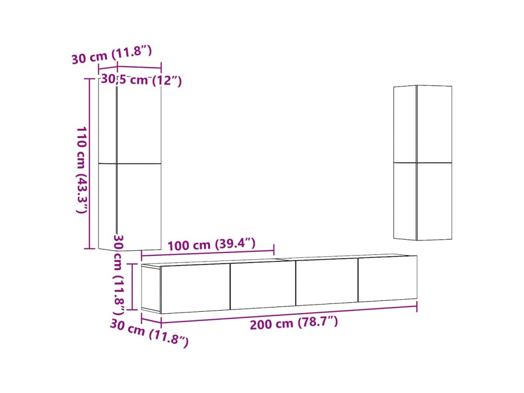 - Rozměry nástěnné TV skříňky (velká): 30,5 x 30 x 110 cm (Š x H x V)