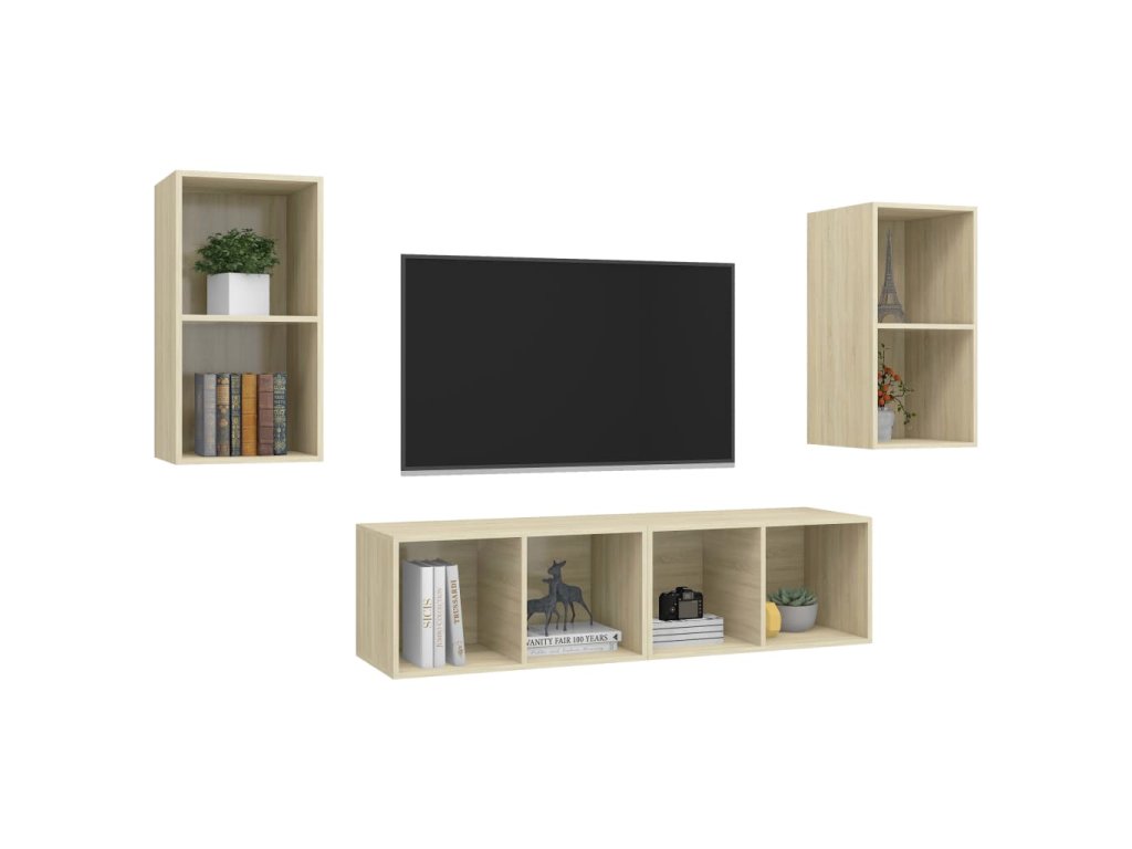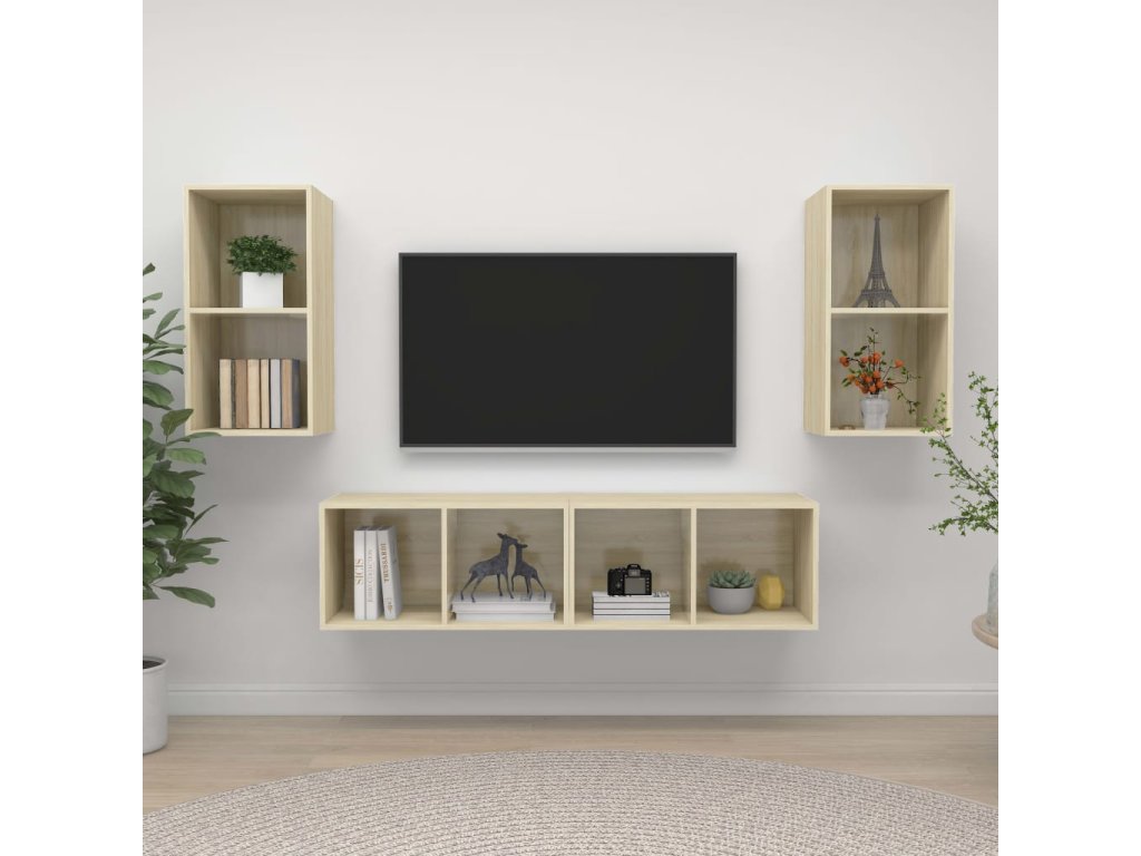 Tento set nástěnných TV skříněk nabízí spoustu úložného prostoru pro organizaci různých předmětů a ve vaší domácnosti bude nepochybně praktickým a poutavým doplňkem.