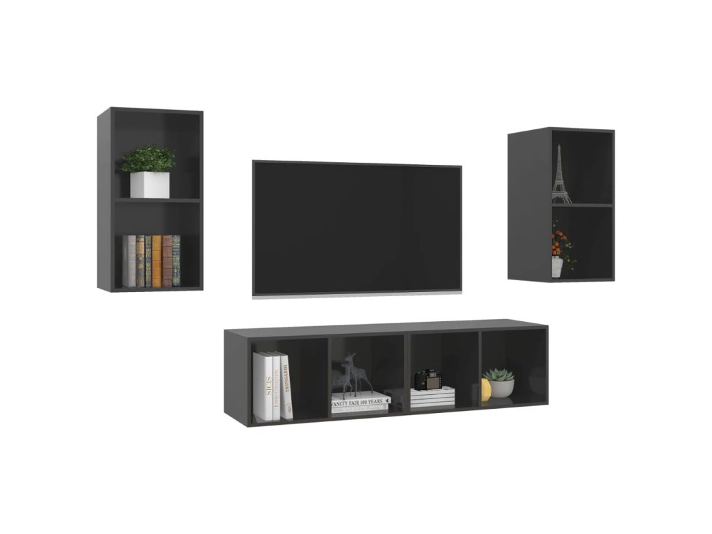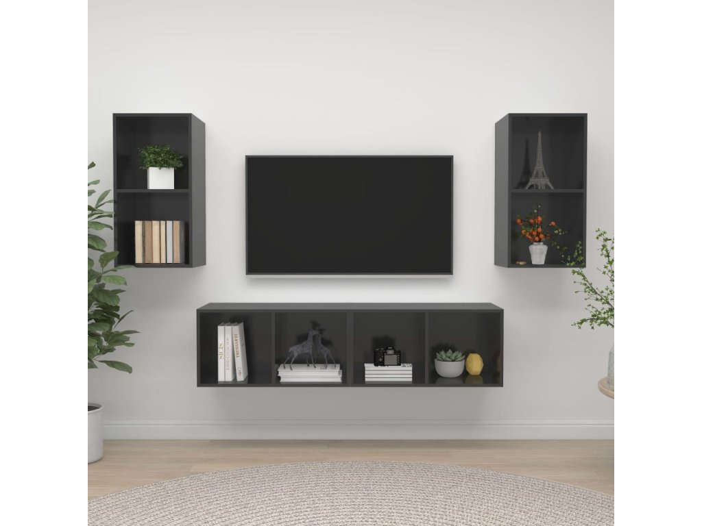 Tento set nástěnných TV skříněk nabízí spoustu úložného prostoru pro organizaci různých předmětů a ve vaší domácnosti bude nepochybně praktickým a poutavým doplňkem.