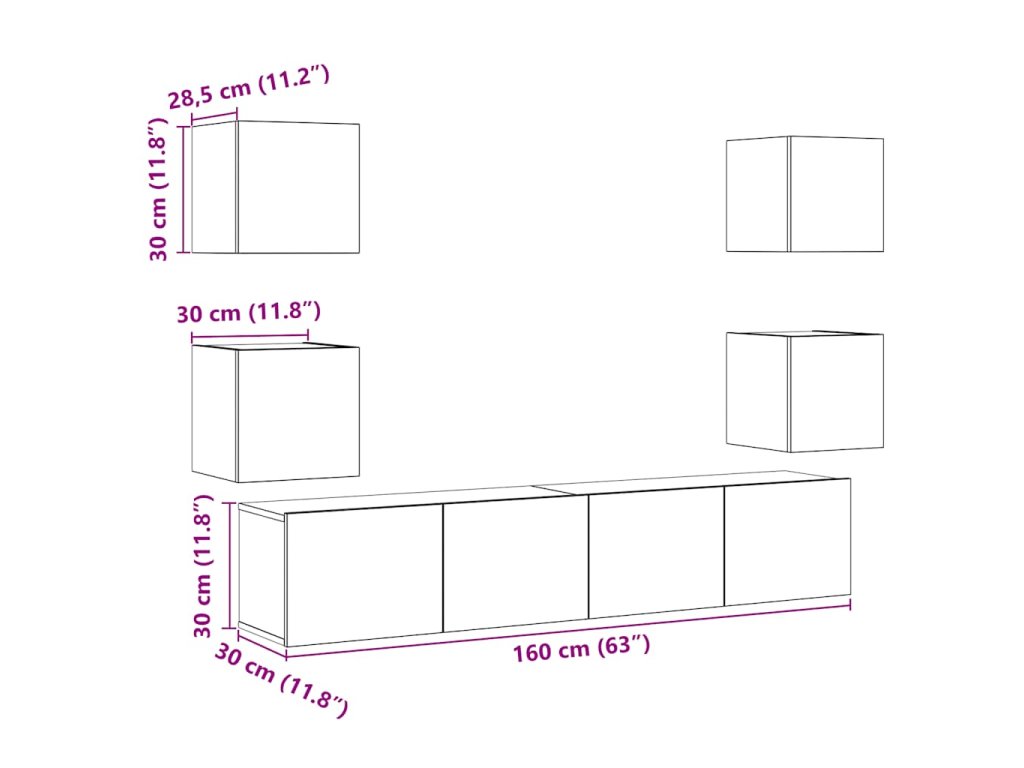 - Rozměry nástěnné TV skříňky (malá): 30,5 x 30 x 30 cm (Š x H x V)
