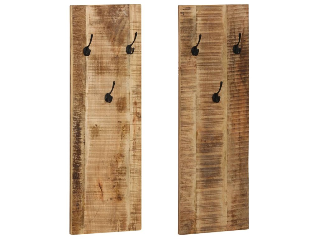 Sada věšáků na kabáty vám poskytne ideální místo, kam si můžete pověsit své kabáty, klobouky, tašky, šály atd. Věšáky jsou vyrobeny z masivního mangovníkového dřeva a jsou velice stabilní a odolné. Mangovníkové dřevo je husté a pevné tvrdé dřevo, které má na povrchu krásnou hnědou nebo zlatou kresbu. Řemeslné zpracování umocňuje okázalý retro styl věšáků. Každá fáze výrobního procesu je prováděna s největší pečlivostí, ať už se jedná o leštění, natírání anebo lakování. Sadu lze snadno namontovat na stěnu. Balení obsahuje 2 věšáky.