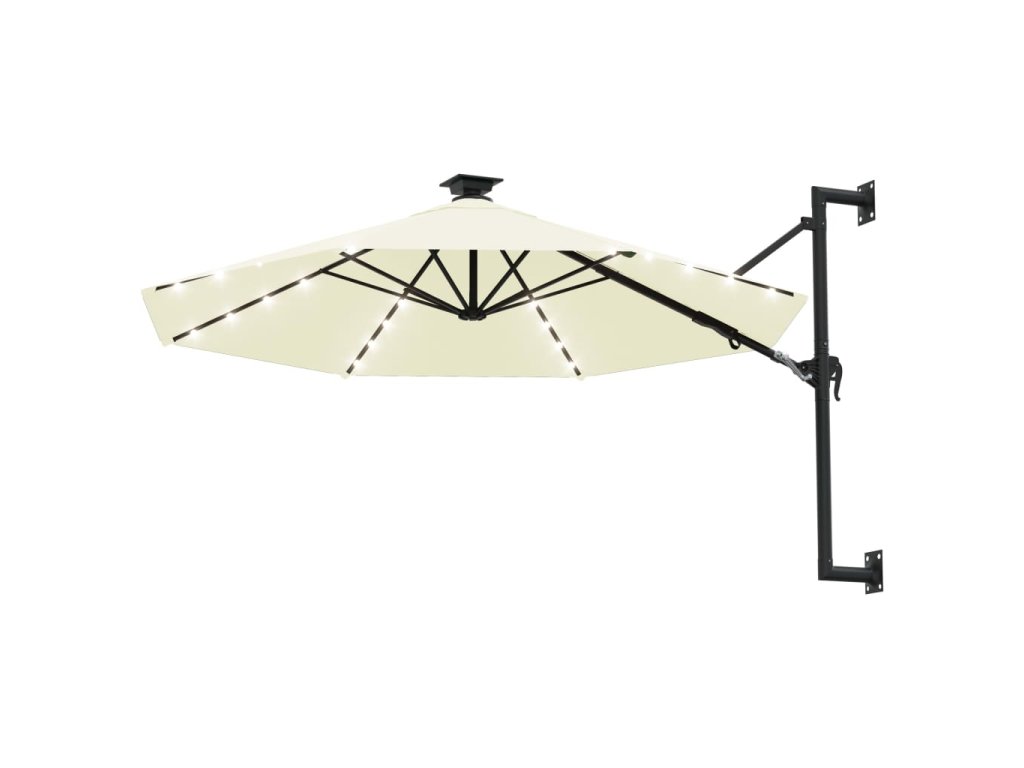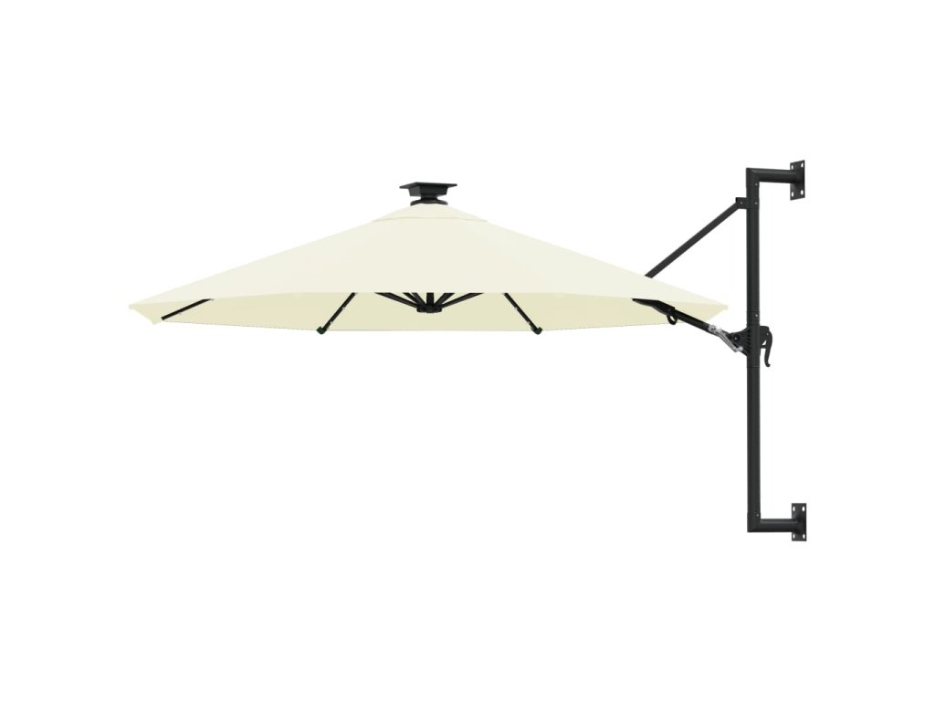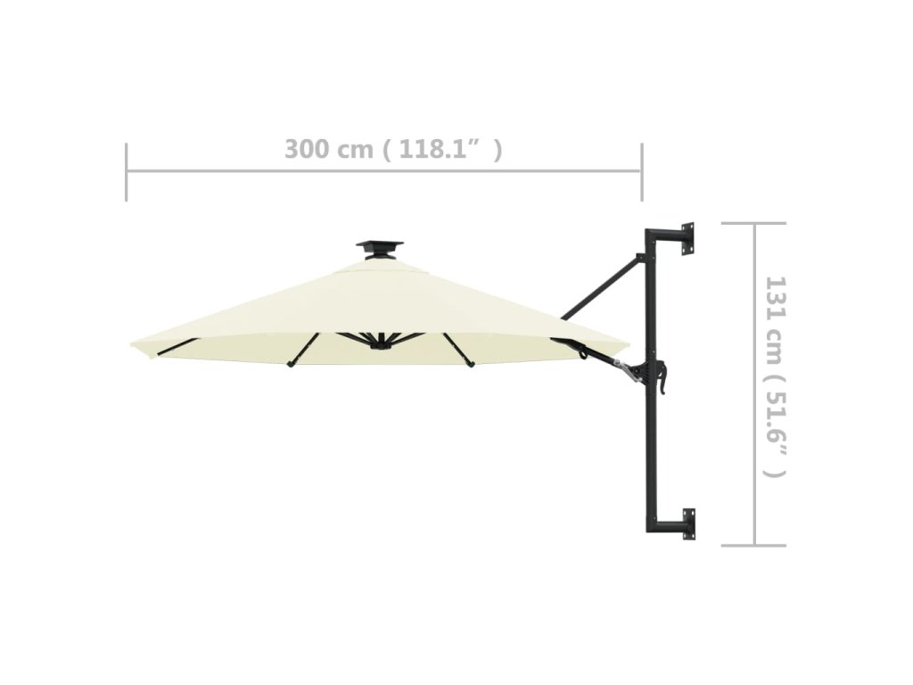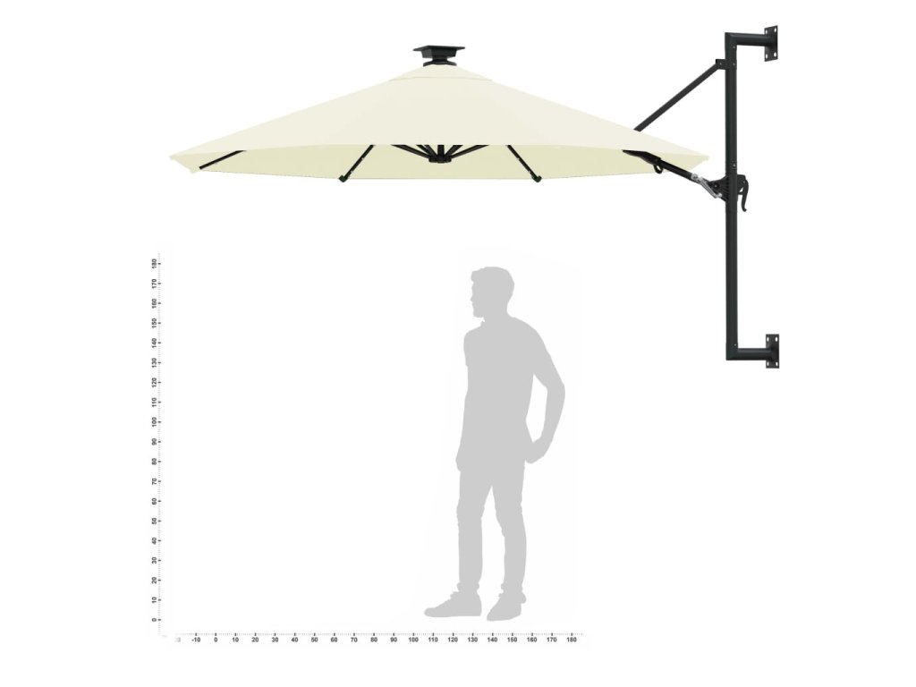Upozornění: Pokud bude slunečník vystavený silnému dešti, doporučujeme ho ošetřit impregnací. Výška tohoto nástěnného slunečníku se odvíjí od výšky, ve které ho upevníte na zeď.
