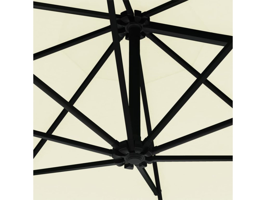 Slunečník je vyrobený z polyesteru, který je odolný vůči UV paprskům a blednutí barev. Poskytne vám tudíž optimální ochranu před sluncem a snadno se čistí. Slunečník má také exkluzivní sklopný design, takže když začne slunce odpoledne klesat k obzoru, můžete ho sklopit a zůstat v příjemném stínu. Stabilitu a odolnost slunečníku zajišťuje silná kovová tyč spolu s 8 odolnými žebry. Zahradní slunečník jednoduše otevřete a zavřete klikovým mechanismem. A chcete-li si večer vytvořit útulné a romantické prostředí, stačí rozsvítit 28 integrovaných LED světel.
