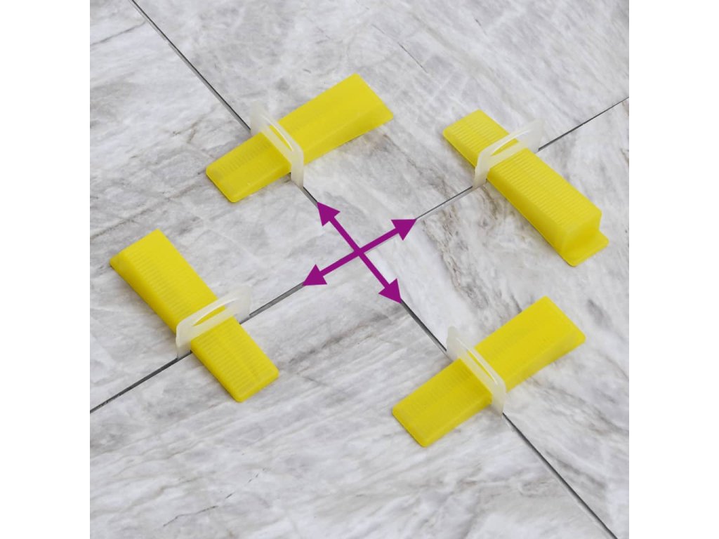 - Opakovaně použitelné klíny na dlaždice: Nivelační klíny se používají ve spojení s nivelačními sponami k zajištění roviny mezi dlaždicemi a jsou opakovaně použitelné pro další instalace.