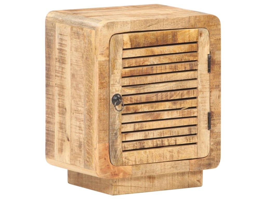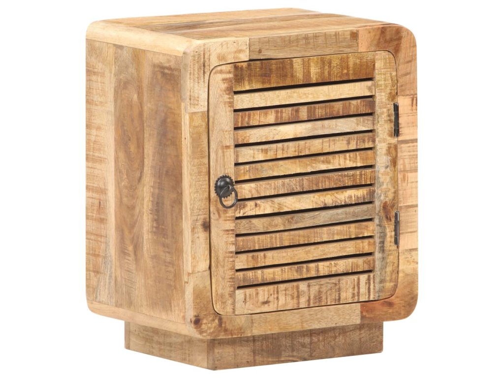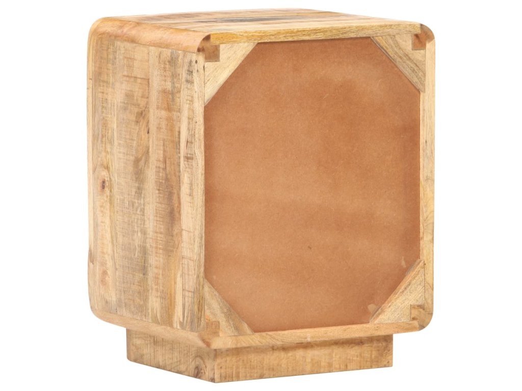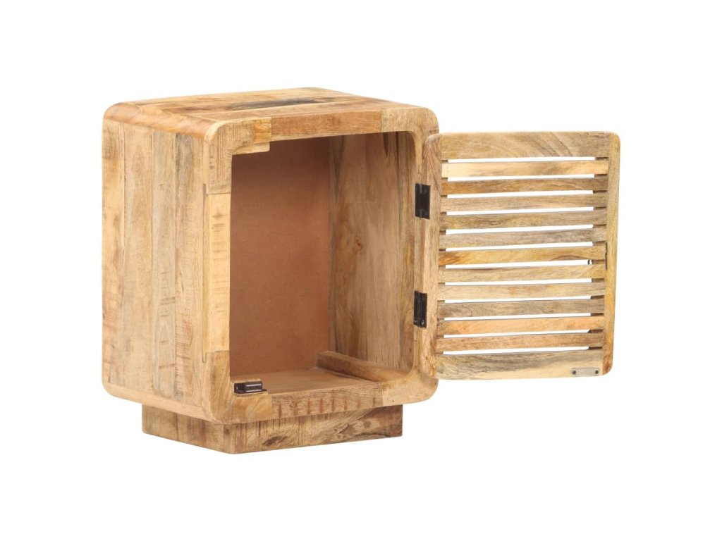Noční stolek je zhotovený z hrubého mangovníku s přírodní povrchovou úpravou. Jedná se o tropické tvrdé dřevo, které dokáže unést značnou váhu a skvěle odolává opotřebení i působení času. Stolek je proto velice stabilní a dlouho vám vydrží. Zručné zpracování a překrásná kresba dřeva od sebe jednotlivé kusy navzájem lehce odlišují, takže je každý z nich zcela jedinečný. Do velké přihrádky za dvířky si můžete ukládat nejrůznější věci, zatímco pevná stolní deska se zase báječně hodí k vystavování dekorací. Stolek k posteli lze rovněž použít jako úložnou skříňku, odkládací stolek apod.