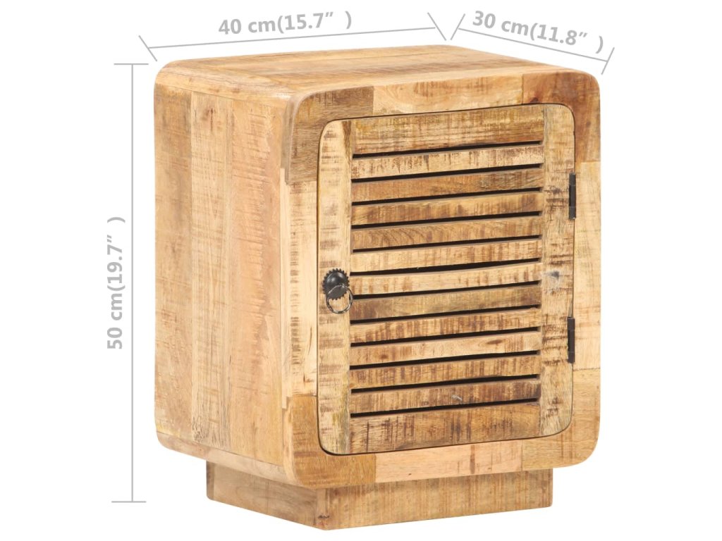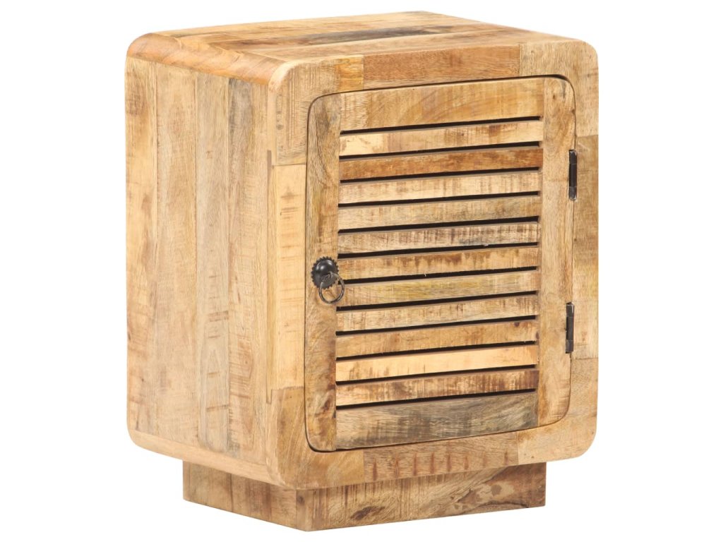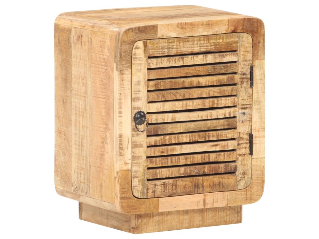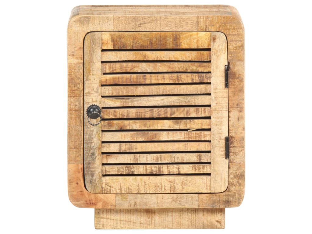 Noční stolek je zhotovený z hrubého mangovníku s přírodní povrchovou úpravou. Jedná se o tropické tvrdé dřevo, které dokáže unést značnou váhu a skvěle odolává opotřebení i působení času. Stolek je proto velice stabilní a dlouho vám vydrží. Zručné zpracování a překrásná kresba dřeva od sebe jednotlivé kusy navzájem lehce odlišují, takže je každý z nich zcela jedinečný. Do velké přihrádky za dvířky si můžete ukládat nejrůznější věci, zatímco pevná stolní deska se zase báječně hodí k vystavování dekorací. Stolek k posteli lze rovněž použít jako úložnou skříňku, odkládací stolek apod.