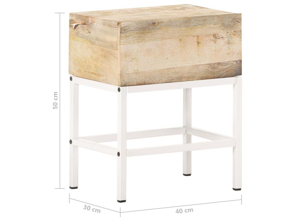 Masivní mangovník je tropické tvrdé dřevo. Má nejen dostatečnou pevnost unést značnou váhu, ale také skvěle odolá opotřebení. Zručné řemeslné zpracování a nádherná kresba dřeva navíc propůjčují každému kusu nočního stolku lehce odlišný charakter. Odkládací stolek je vybaven 1 zásuvkou, poskytuje tedy dostatek prostoru pro všechny vaše věci, které chcete mít přehledně uschované. Železná základna mu navíc dodává na robustnosti.