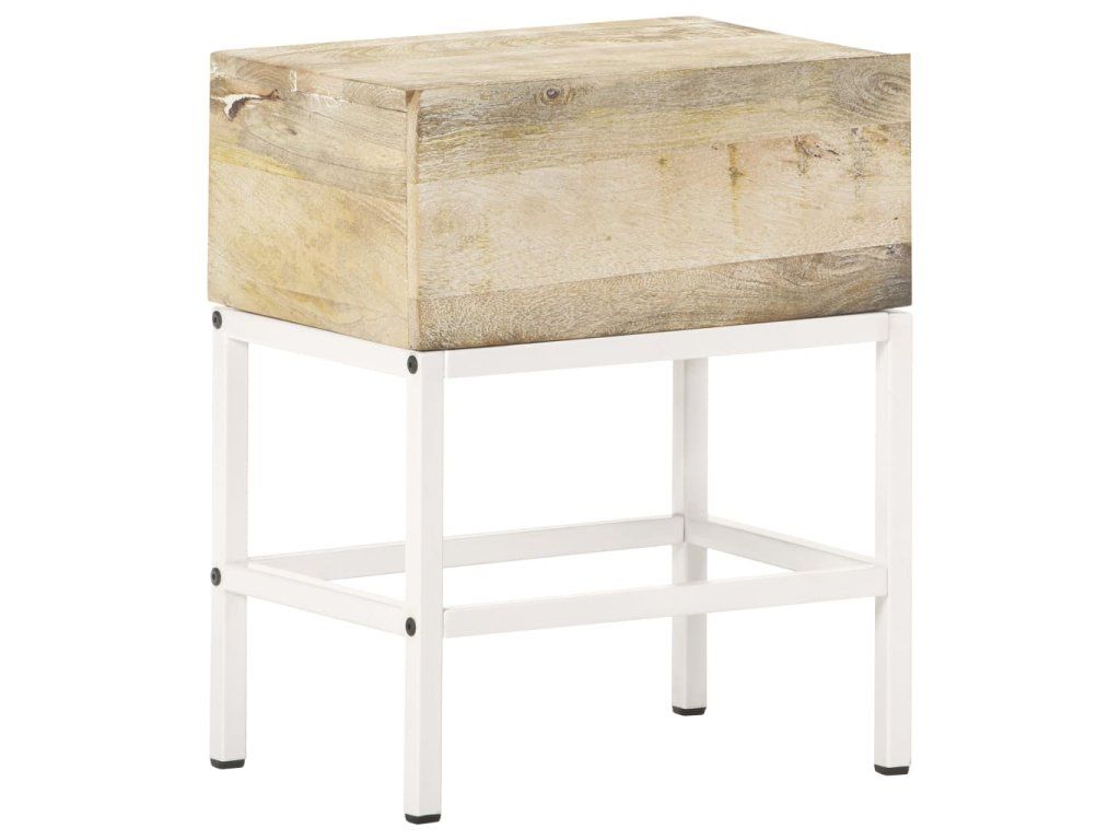 - Materiál: masivní mangovníkové dřevo s přírodní povrchovou úpravou, železo s bílým práškovým nástřikem